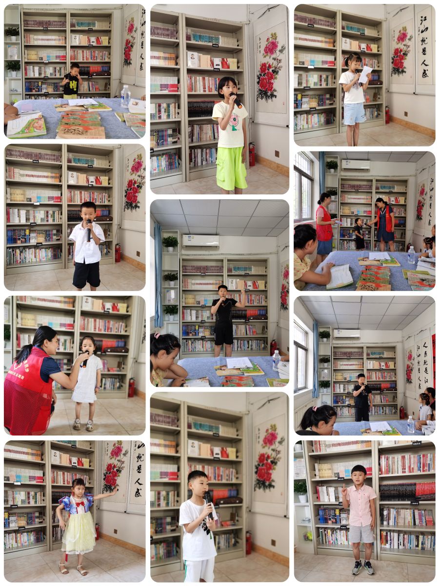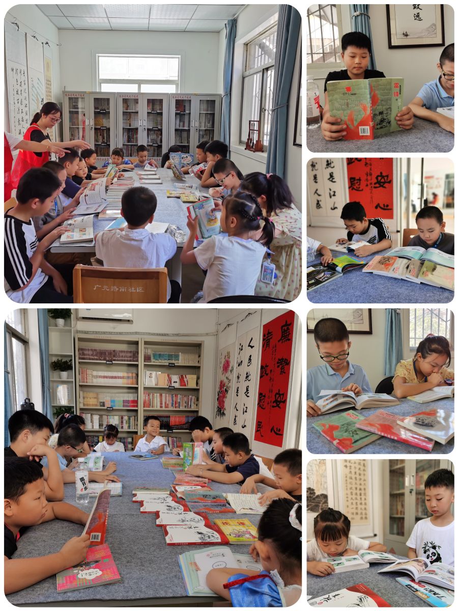 品味读书乐趣,赓续红色文脉。红色宣讲结束后,孩子们在社区图书阅览室,选择自己喜爱的红色书籍、优秀经典著作等进行阅读,一同汲取向上的智慧和力量。书中的文字如潺潺溪流,在孩子们心田流淌,润泽着被夏日骄阳烤炙的心灵,如夏日的清风,吹散心头的燥热;如夏夜的繁星,点亮心灵的灯塔,燃起孩子们心中的红色星火。之后,根据自身阅读体会,孩子们逐一分享书中的精彩语句及故事片段,尽情展示着读书的收获与快乐,在交流互动中充满浓浓的红色气息,现场读书氛围十分活跃,让人深切地感受到红色的种子正在他们心中悄悄萌芽,一张张鲜活的小脸上都洋溢着自豪与坚定。