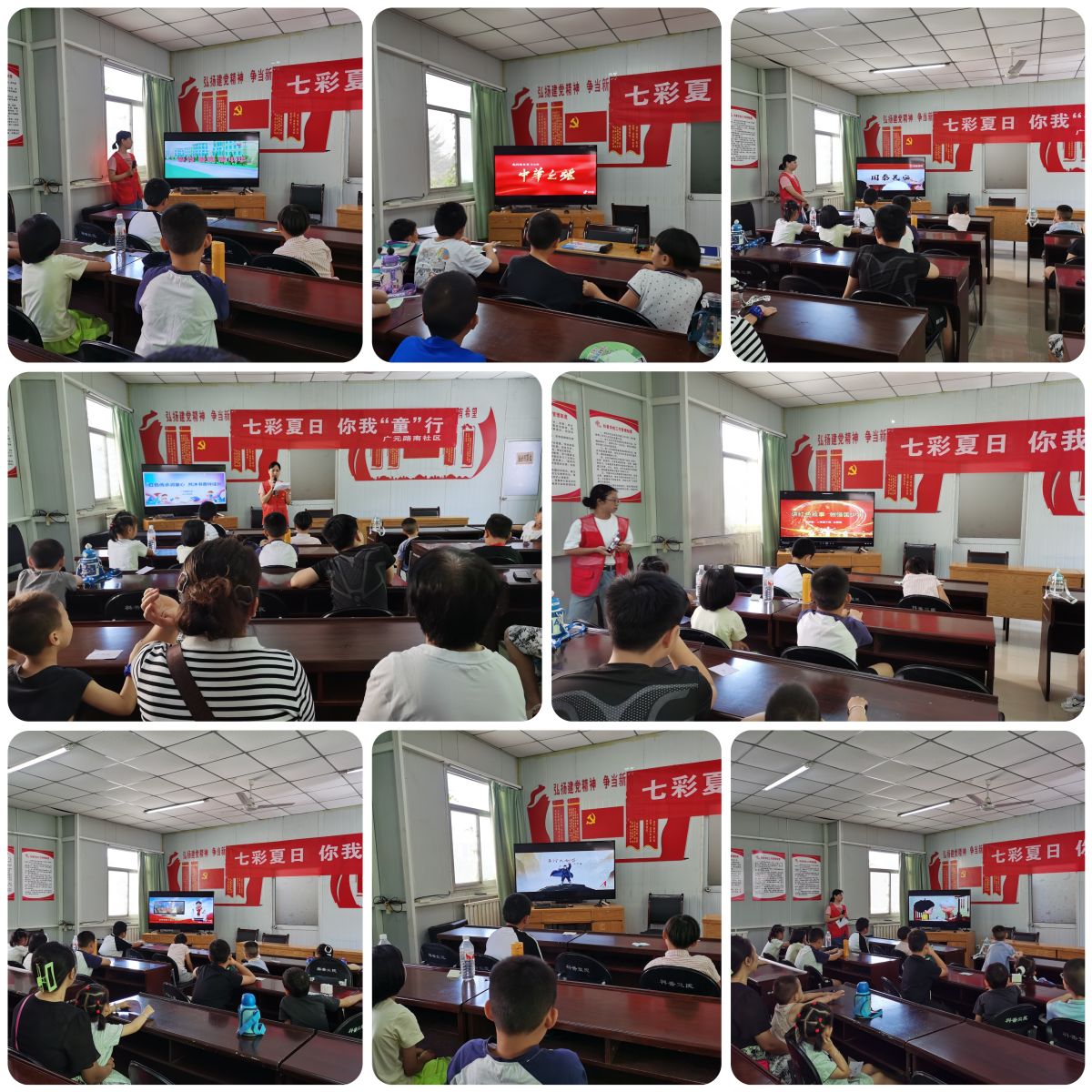 传承红色基因,赓续精神血脉。活动初始,社区志愿者为孩子们开启了一场题为《讲红色故事 做强国少年》的红色宣讲之旅。通过讲述革命先烈的英勇事迹,观看《爱党爱国爱中华》、《中华之魂》、《友善助人 孝老爱亲》等教育视频,将红色信仰的种子播撒在儿童青少年的心中,让孩子们从小学习革命先烈的英雄事迹和精神,并立志沿着先烈的足迹前行。孩子们瞪着大大的眼睛,看的认真、听得入神,仿佛穿越时空,看到了那些勇敢无畏的英雄先烈,在润物无声中引导孩子们树立起正确的人生观和价值观.“童心向党、童心向党,播种希望、快乐飞翔......”宣讲活动在孩子们充满正能量的歌声中落下帷幕。