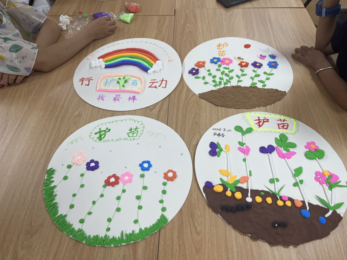在手工DIY环节,孩子们围绕“护苗行动,花朵无忧”主题展开丰富的想象,大胆构思,在社区工作人员与家长的悉心指导下,孩子们充分发挥了各自的想象力和创造力。运用粘土、画笔,在纸盘上精心绘制出各种形状的护苗作品,不一会,一个个主题突出、色彩明艳、构图饱满,诠释“护苗行动,花朵无忧”深刻内涵的作品跃然眼前。