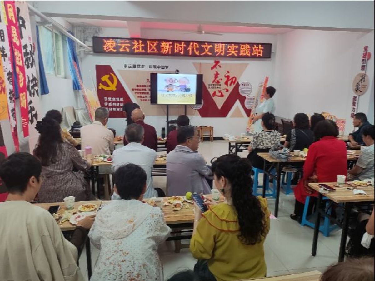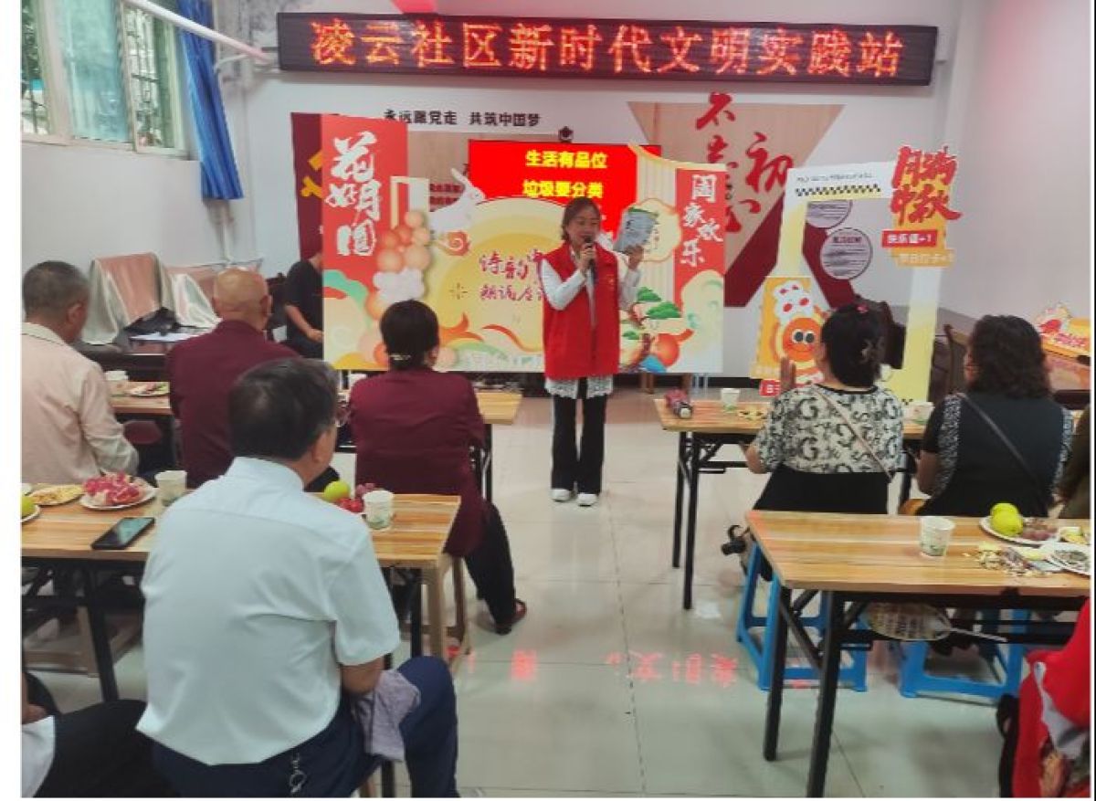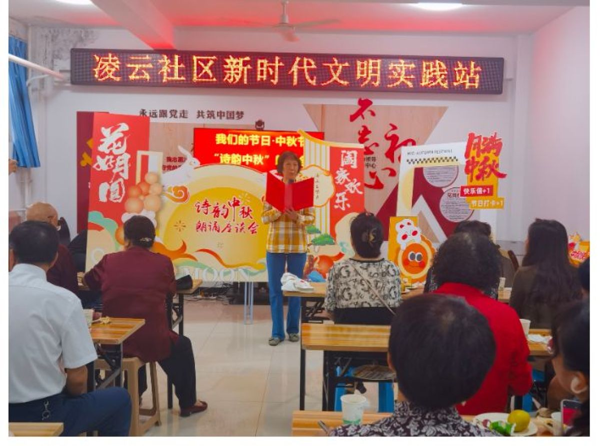 在这个秋风送爽、丹桂飘香的季节里,9月13日上午,凌云社区新时代文明实践站开展了一场别开生面的诗韵中秋座谈会。此次活动不仅有诗朗诵和节目演出,还融入了垃圾分类宣传以及老年人心理健康知识普及等内容,为社区居民带来了一场充满文化氛围和实用知识的中秋佳节活动。