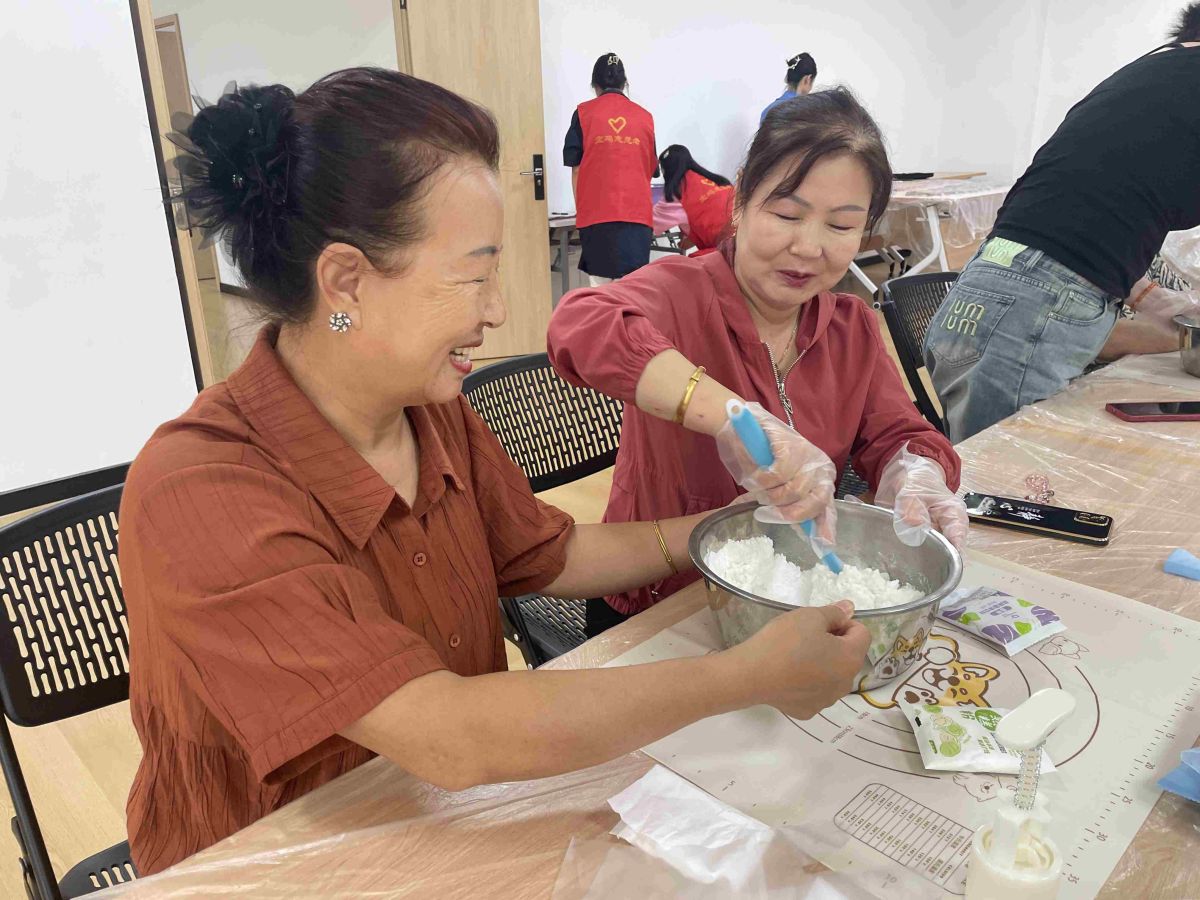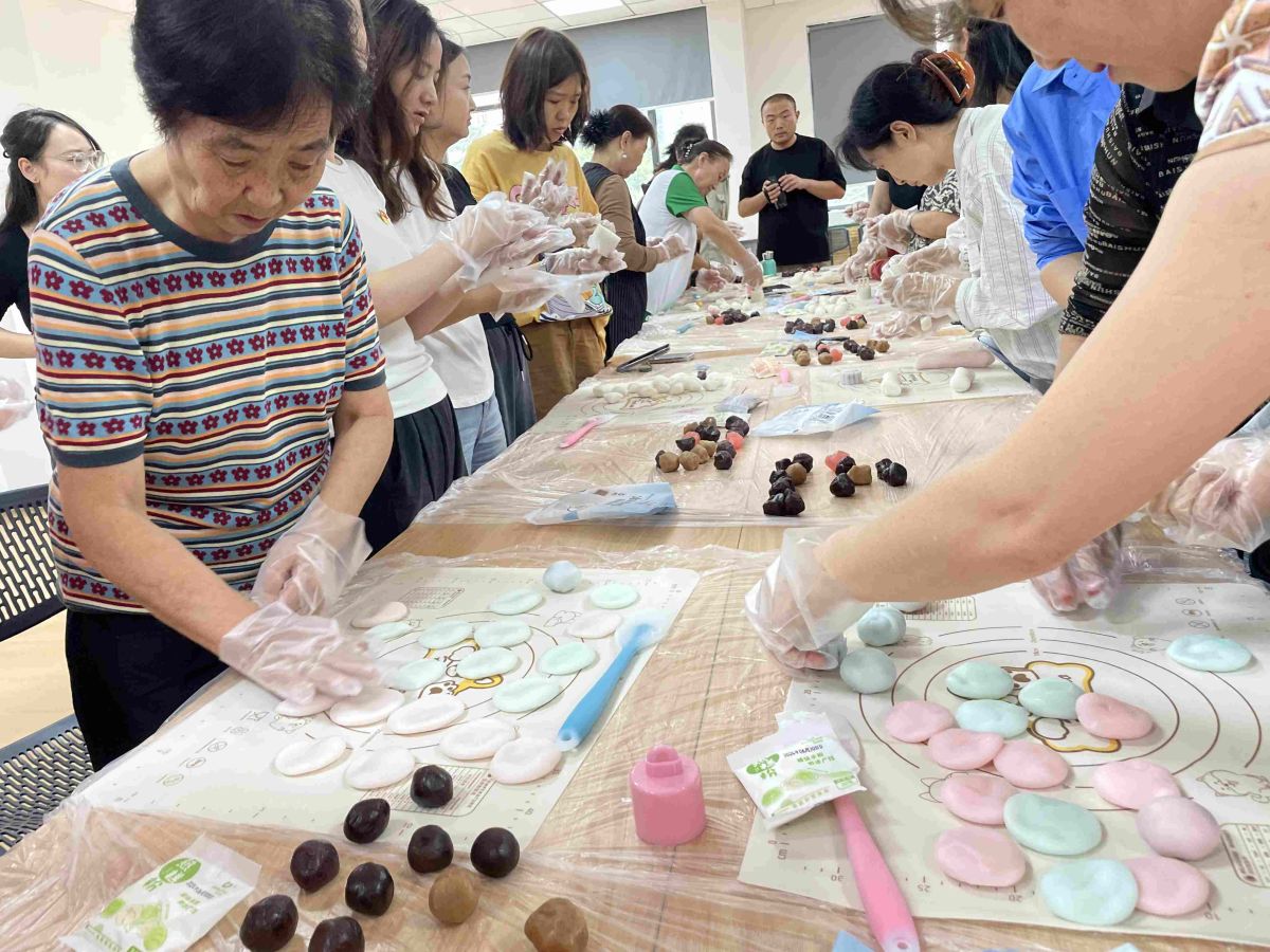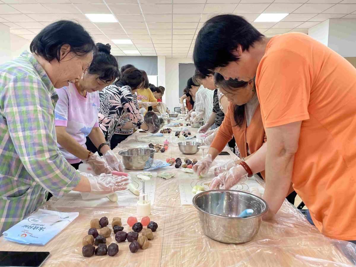 活动开始,工作人员先为大家讲解了关于中秋的传说与神话故事,让居民朋友对中秋节有了更深的了解与认识,之后,为大家详细介绍了冰皮月饼的制作方法,所有人跃跃欲试,迫不及待地大展身手。