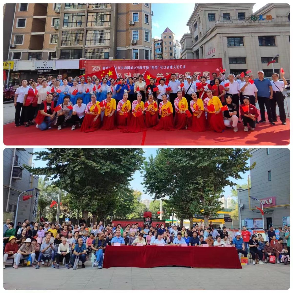 欣望江山千里秀,欢颂祖国万年春。在这硕果累累、金风送爽的季节,在这举国欢庆、阖家团圆的日子,广元路南社区共邀桥南街道办事处、互联共建单位与社区居民朋友欢聚一堂,共同开展“厚植爱国情怀,共建和美家园”庆祝中华人民共和国成立75周年暨“四型”社区创建文艺汇演,共庆盛世华诞。