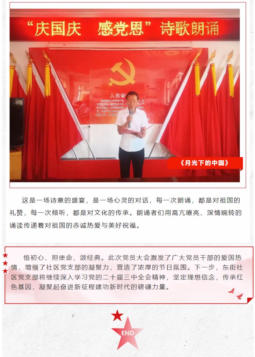 砥砺前行守初心 奋进征程铸党魂——蔡家坡镇东街社区党支部召开2024年第三季度党员大会暨“庆国庆 感党恩”诗歌朗诵主题活动