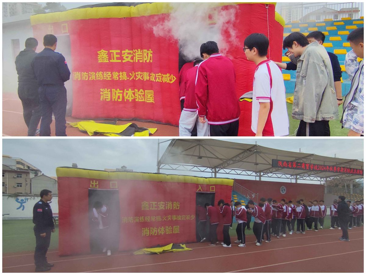 此次应急演练活动主要分为三部分;活动第一部分由专业消防安全教官宣讲安全知识,针对学校内容易发生的安全隐患逐一讲解,在轻松愉快的氛围中补齐安全理论短板,用通俗易懂的语言提升全体师生预防控制能力和应急处置意识;活动第二部分由陕西省第二商贸学校组织全校师生参与教室、宿舍消防逃生演练,社区工作人员现场协助引导学生有序逃生,在紧张有序的演练中提高学生面对地震等灾害逃生的技能,增强师生处置突发事件的应急能力;活动第三部分由社区组织师生在操场开展烟雾逃生演练,通过烟雾帐篷演练道具,模拟发生火灾如何科学逃生,现场由消防安全教官指导,让学生手持毛巾捂住口鼻,下压身体有序穿过烟雾通道,避免火灾发生对身体健康造成二次伤害;活动最后社区与学校共同总结此次活动经验,指出未来还需改进的地方,共同表示在国际减灾日之际社区协同学校开展此次演练活动,正是体现出社区与辖区单位共驻共建的作用,让双方同时提升了识别风险的能力,掌握了减灾技能。