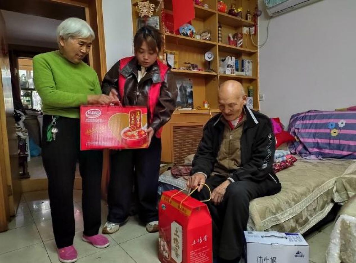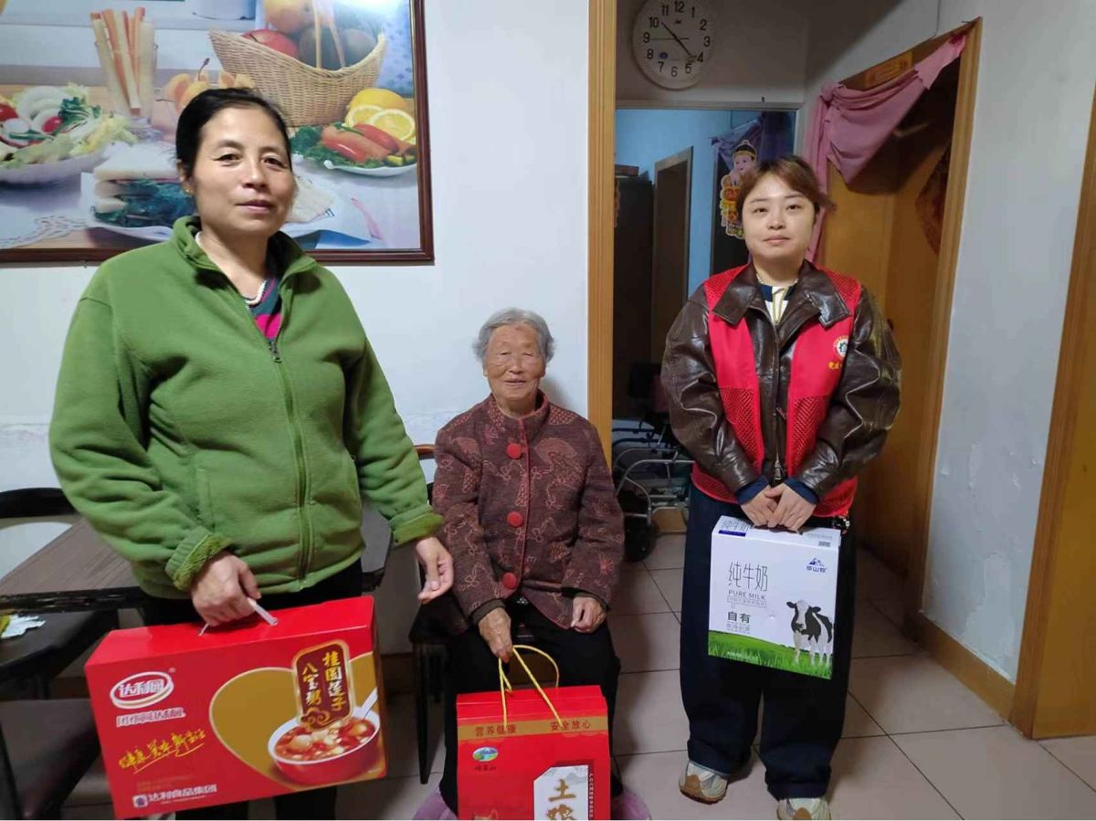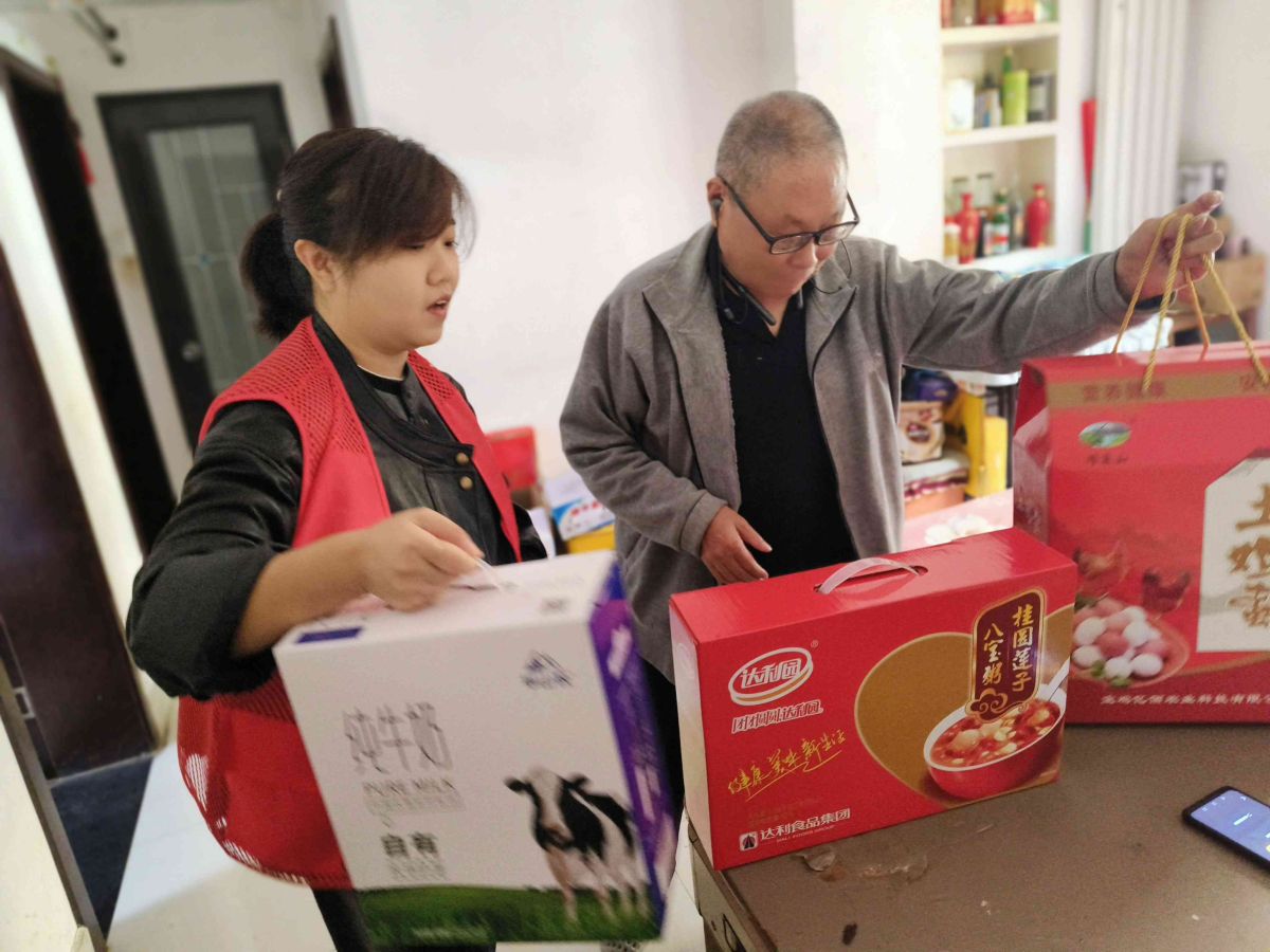 活动前期,通过对辖区人员的细致摸排,居民代表、物业推荐,确定了六户需要关怀的特殊家庭,包括独居、高龄、残障人士等。活动当天,社区工作人员带着精心准备的慰问品,逐户走访慰问,并嘱咐他们保持良好的生活习惯和积极心态。同时,向老人们传达了党和社区的关怀及节日祝福。尽管老人们年岁已高不断向慰问人员表达对党和政府的感激之情。