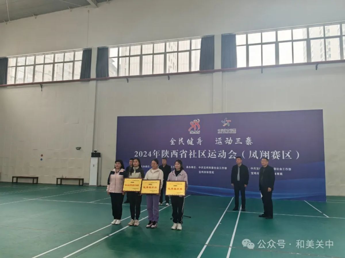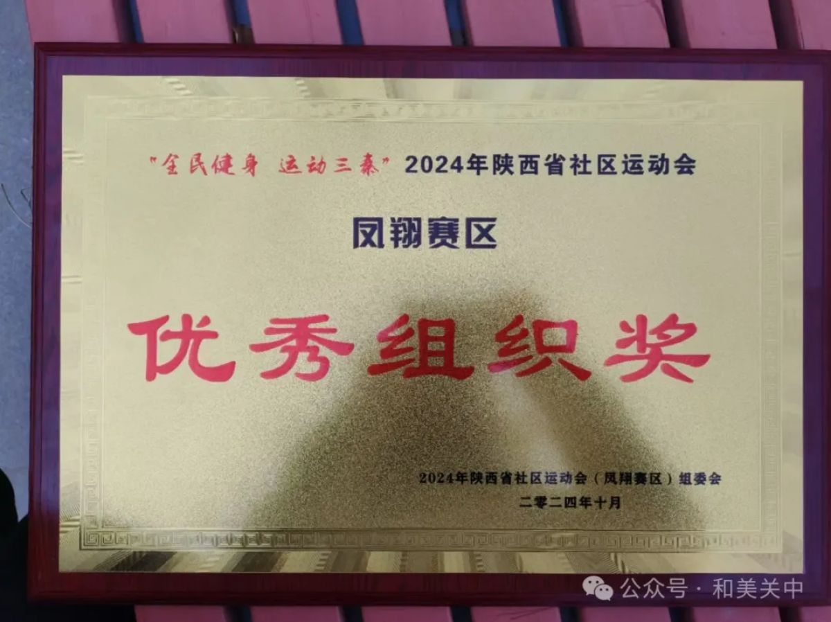 2024年10月221日上午,为期一周的陕西省社区运动会(凤翔赛区)拉开帷幕,关中社区共20余名运动员参加其中六项比赛,获得女子乒乓球比赛第一名、跳绳比赛第一名、女子拔河比赛第三名、太极拳比赛第五名,获得2024年陕西省社区运动会(凤翔赛区)优秀组织奖。