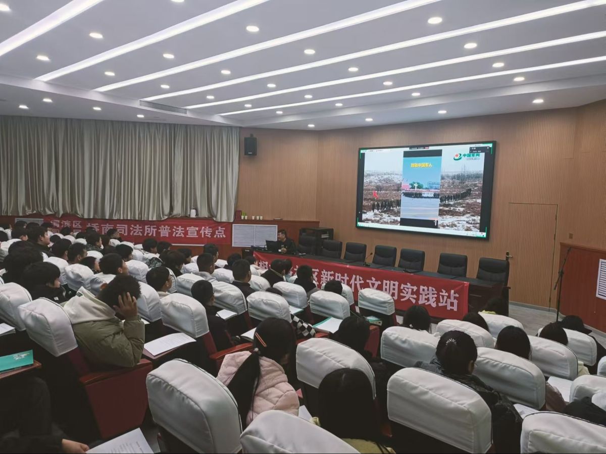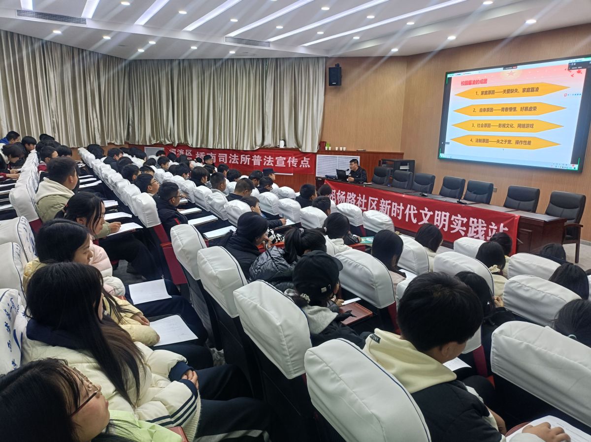 活动中,社区退役军人志愿者、宝鸡市渭滨区人民调解协会副会长兼秘书长侯典帅首先为学生上了一堂校园防欺凌法律知识讲座,通过以案说法,向学生们深入浅出地介绍了校园欺凌的定义、现状、成因及预防措施,让学生们更加直观地了解到校园欺凌的严重危害性,引导学生要遵规守纪,敢于克服恐惧心理,勇于面对欺凌说“不”!接着,侯副会长以“老兵”身份,饱含深情地与学生们分享了自己参军入伍的初心、军旅生活的成长经历,以亲身经历和所见所闻,讲述了革命军人不怕牺牲、勇于担当、无私奉献的崇高精神品质;鼓励同学们要有军人品质,努力奋斗,为祖国发展贡献力量。同学们聚精会神地聆听,不时报以热烈的掌声。活动结束时,工作人员组织学生开展了反对校园欺凌承诺宣誓,响亮的誓言在报告厅回荡,彰显了学生们抵制校园欺凌的坚定决心。