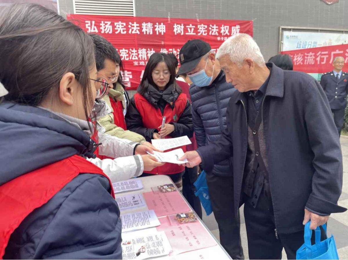 为进一步增强人民群众的获得感、幸福感和安全感,不断丰富法治宣传内容和形式,为广大居民提供切实有效的法律服务,12月4日上午,学子路社区联合宝鸡高新税务局、马营镇司法所、宝鸡高新医院和东社区卫生服务中心在左岸新城北广场开展“法律宣传入人心 健康义诊惠民生”宪法日主题活动。