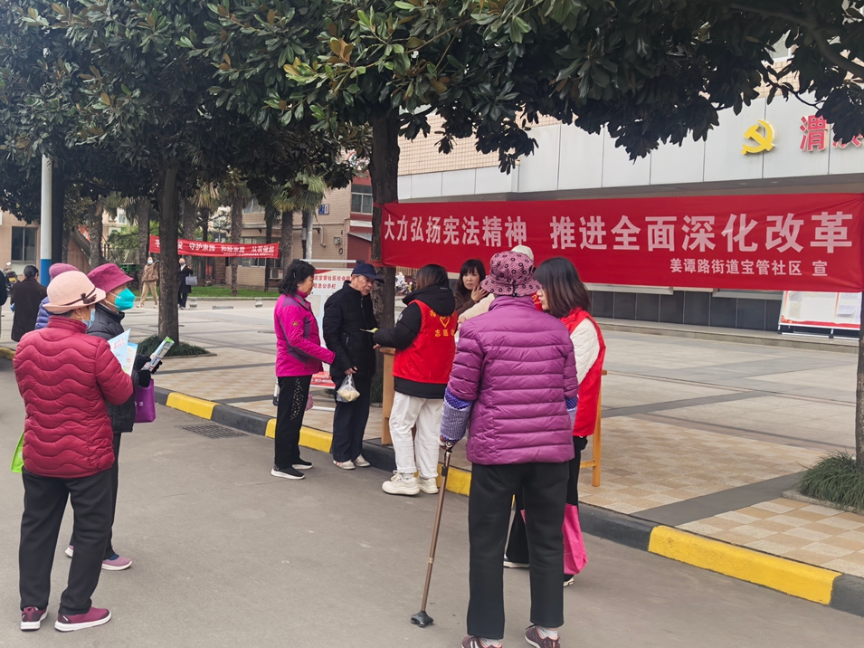 2024年12月4日是我国第十一个国家宪法日,为深入贯彻习近平法治思想,全面贯彻落实党的二十届三中全会精神,大力加强宪法宣传教育,弘扬宪法精神,维护宪法权威,推动宪法全面贯彻实施,进一步全面深化改革、营造良好法治环境。姜谭路街道宝管社区开展了“大力弘扬宪法精神,推进全面深化改革”宣传活动。