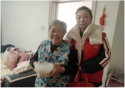活动最后,社区工作人员将饺子分别送到辖区独居、高龄老人、困难户等10个特殊群体家中,为他们送上冬日的祝福与关怀。同时询问他们的身体状况和生活情况,叮嘱老人们天气渐渐凉了,注意保暖,浓浓的敬老爱老情随着饺子的阵阵香味弥漫在心尖。