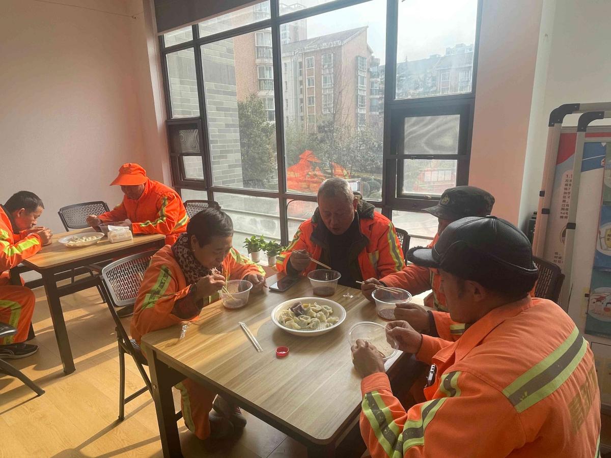 社区还邀请了辖区民警、环卫工人共同品尝饺子,为他们在寒冷的冬日里送去温暖与问候。
