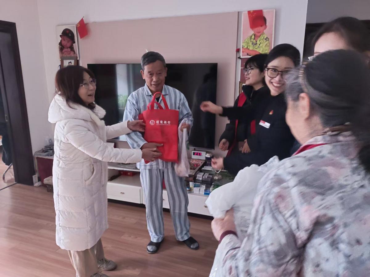此外,社区还联合辖区单位招商银行,为行动不便的空巢老人和高龄党员送去爱心饺子及慰问品,让他们感受到节日的温暖。社区张书记与老人们谈着心,仔细询问他们的身体状况和生活情况,叮嘱他们要保重身体,注意预防冬季流感。
