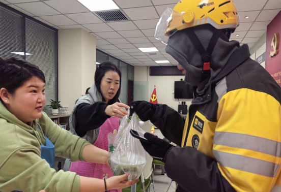 与此同时,社区没有忘记那些默默守护着我们日常生活的“城市英雄”——辖区的门卫、快递员、外卖员们。活动后期,工作人员带着刚出锅的饺子,一一走访了门卫、快递员、外卖员们的工作岗位,将这份温暖传递给了每一位在寒风中坚守的人。外卖员小李感动地说:“平时工作忙,很少有机会和社区的人接触,今天能收到社区亲手包的饺子,真的很意外,也很温暖。感觉自己的努力被看到了,被尊重了,真的很感谢社区。”门卫大叔也竖起了大拇指:“社区真是我们的坚强后盾,平时帮我们解决了很多生活上的困难,现在又送来饺子,真是暖到心里去了。”