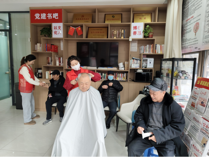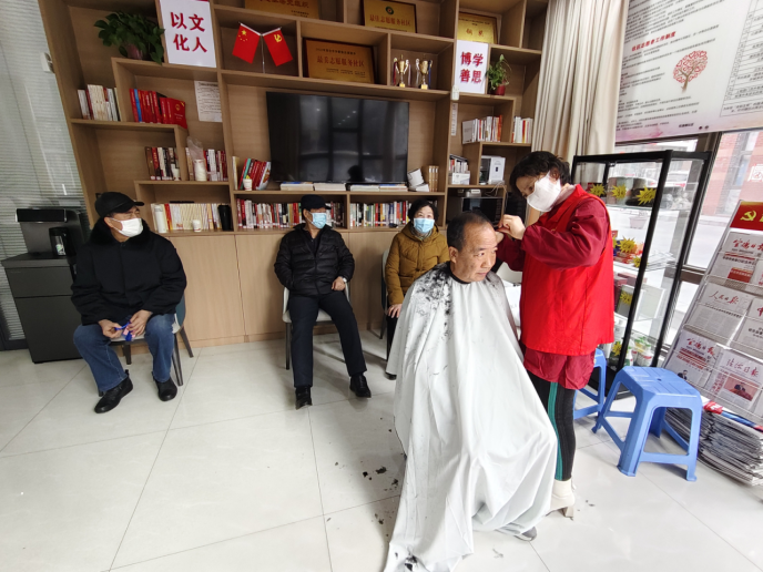 在等待理发的过程中,社区工作人员还贴心地为老人们准备了热茶,让他们在寒冷的冬日里感受到身心的双重温暖。大家围坐在一起,一边喝着茶,一边愉快地聊天,现场气氛其乐融融,仿佛一个大家庭的聚会。