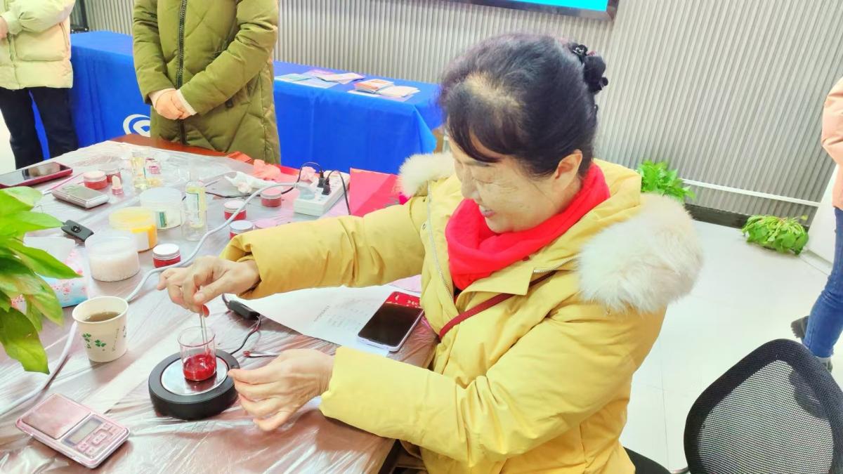 在讲师的指导下,居民们纷纷动手实践起来。大家围坐在一起,挑选自己喜欢的颜色和精油香味,有的选择清新的柠檬香,有的选择浓郁的玫瑰红。制作过程中,大家互相交流心得,分享着各自的小创意。现场不时传来阵阵欢声笑语,大家沉浸在这份手工制作的乐趣之中。