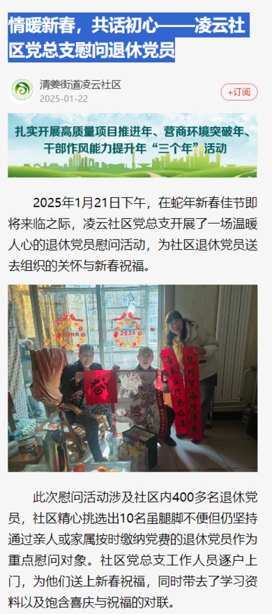 情暖新春,共话初心——凌云社区党总支慰问退休党员
