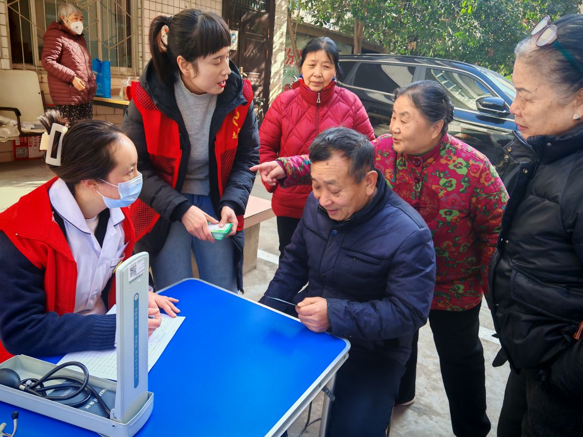 在午餐开始前,一场爱心义诊活动也在运管处小区有序展开。社区特意邀请了新惠仁医院的专业医护人员,他们携带专业仪器早早到场,在场地一角布置出一个简易却充满关怀的诊疗区域,为社区老人进行血压、血糖等常规体检。在这个小小的义诊区域里,传递的不仅是健康关怀,更是社区对老人们无微不至的关爱。