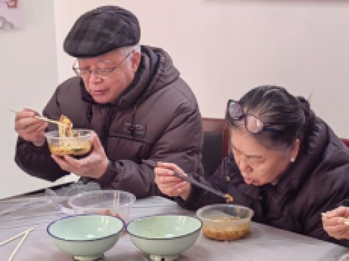 小区的老人们也陆续来到活动现场,现场气氛更加热烈。大家围坐在一起,一边看着志愿者们忙碌的身影,一边唠着家常,仿佛回到了年轻时的热闹时光。王奶奶感慨道:“如今这社区,倒比自家娃儿还贴心,我们这些老家伙除了过年,很少能有机会这么热闹了。”其他老人们也纷纷点头附和,脸上洋溢着幸福的笑容。随着时间的推移,爱心午餐终于准备就绪。志愿者们小心翼翼地将一碗碗热气腾腾的岐山臊子面和家常菜端到老人们面前。老人们接过饭菜,连连道谢。