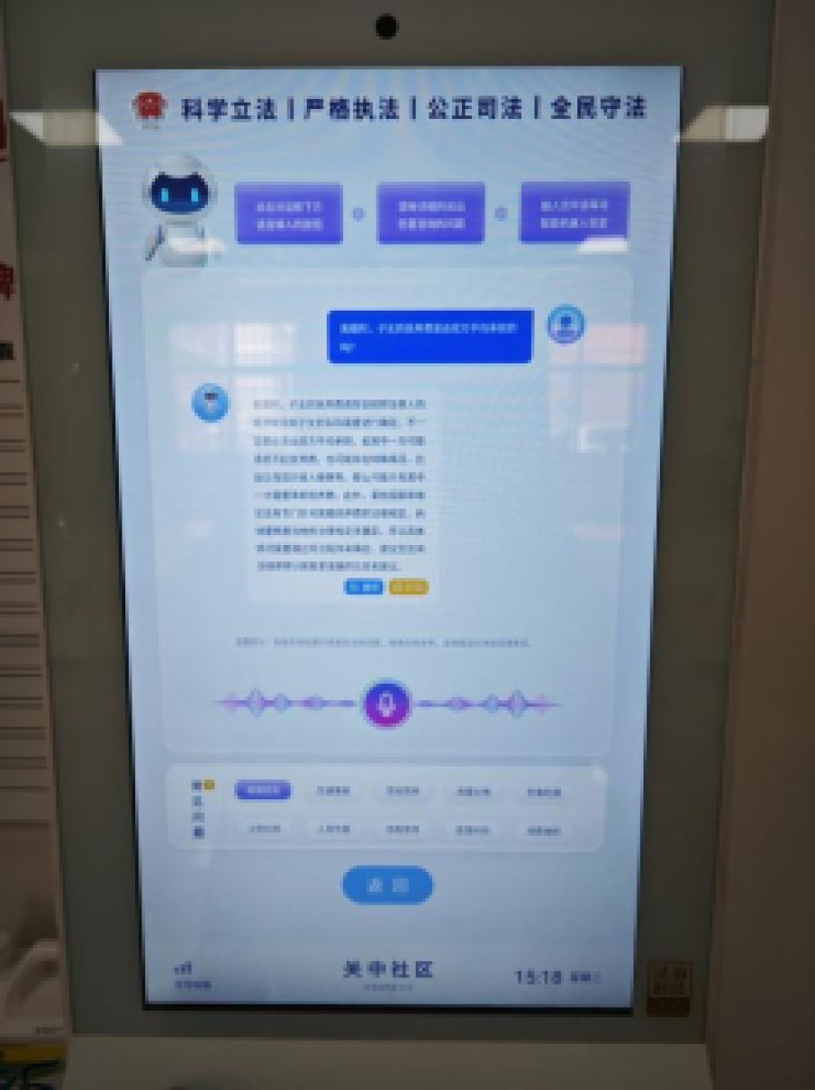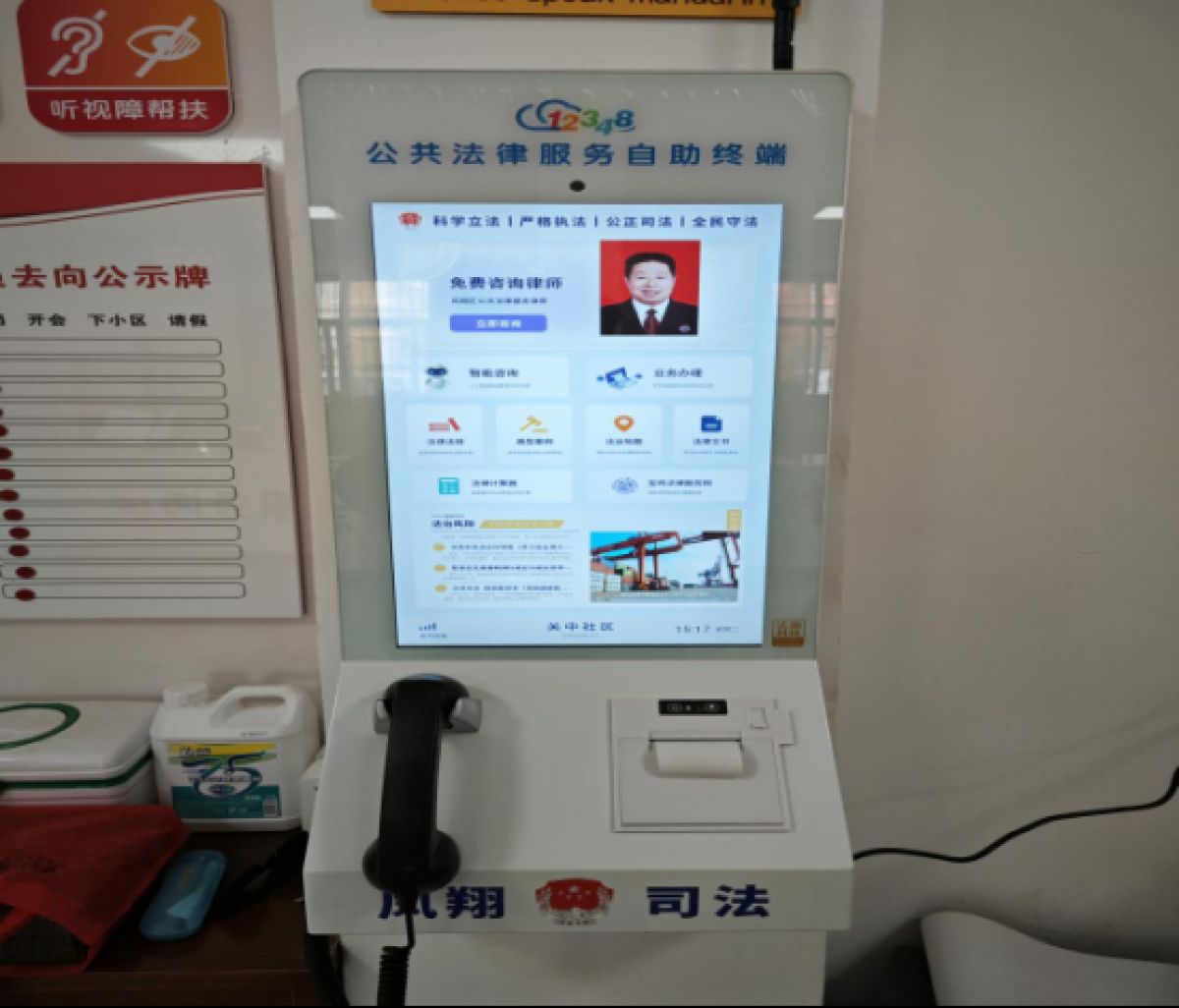 为进一步方便群众获得便捷的法律服务,提升公共法律服务智能化水平,关中社区引入公共法律服务自助终端机,向居民提供更具专业性、时效性、便捷性、实用性的法律服务。
