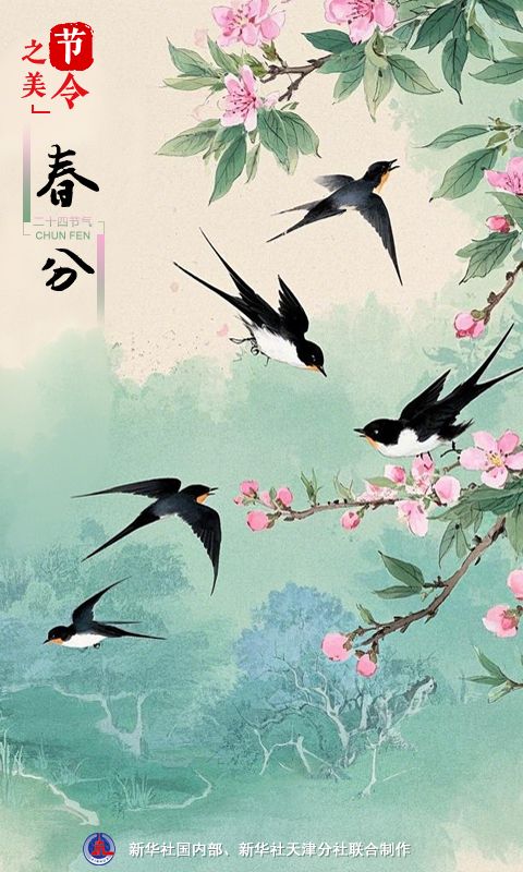 春分到,元鸟至。元鸟就是燕子,亦称玄鸟,其轻盈的姿态、勤劳的习性以及象征着春天的到来,常常引得无数诗人竞相吟咏。陶潜说:“翩翩新来燕,双双入我庐。”元稹云:“梁间玄鸟语,欲似解人情。”杜甫道:“泥融飞燕子,沙暖睡鸳鸯。”