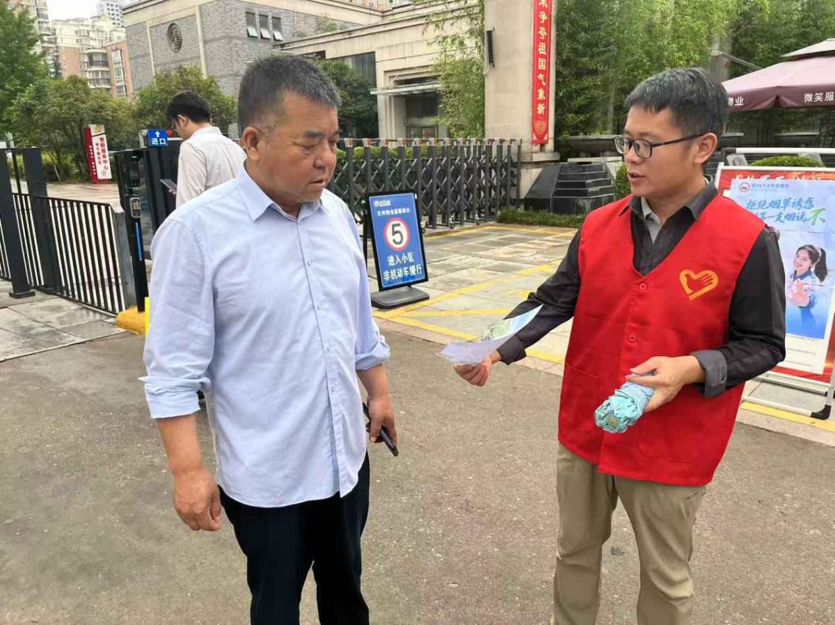 随后,“双报到”党员志愿者们化身健康宣传员,深入左岸新城小区广场、楼栋,向过往居民及周边商户发放精心制作的控烟宣传单页。单页内容涵盖戒烟益处、科学戒烟方法及无烟环境建设指南。“双报到”党员结合宣传片内容与单页要点,用通俗易懂的语言为居民耐心讲解吸烟对个人健康的慢性侵蚀、对家庭成员的间接伤害,以及对社会医疗资源的沉重负担,引导居民自觉抵制烟草诱惑。呼吁居民少吸烟、不吸烟,也不要在室内和公共场所吸烟,为自己和家人营造一个无烟、清洁、健康的学习、工作和生活环境。