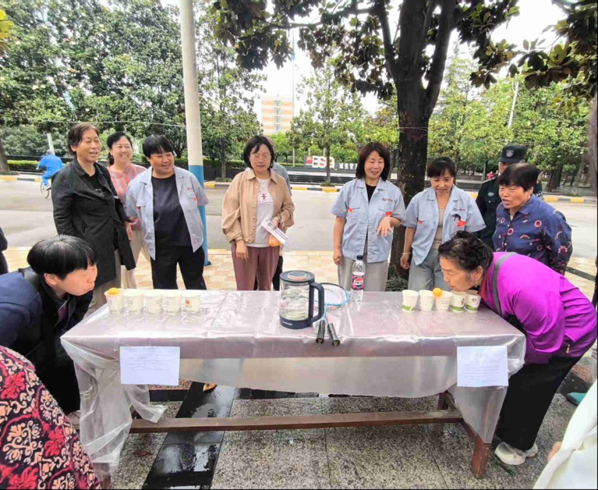 活动现场特别设置“杯水乒乓”趣味游戏吸引了众多居民参与。现场加油声、欢笑声此起彼伏,气氛热烈欢快,大家在轻松有趣的互动中拉近了距离。