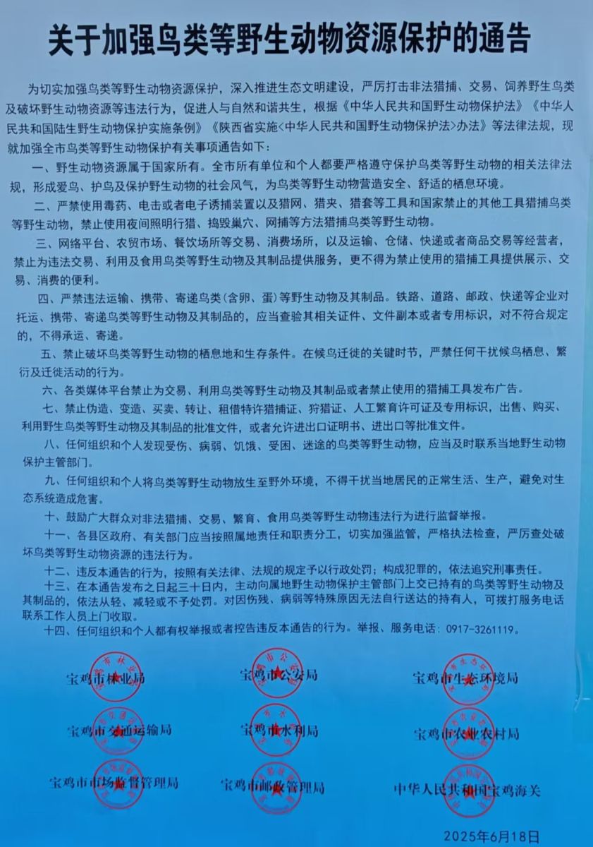 关于加强鸟类等野生动物资源保护的公告