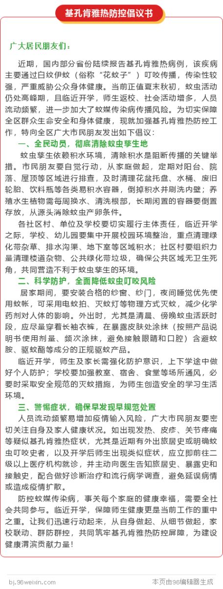 【倡议书】关于全民防蚊灭蚊,防控基孔肯雅热的倡议书
