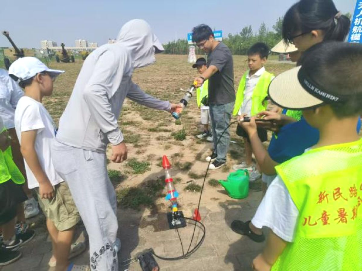 战机筑童梦,义仓润童心。14日上午,孩子们走进宝鸡国防航空科普飞行教育基地,近距离观摩无人机表演,参观59式中型坦克、54式榴弹炮等军事装备,震撼的实物展示让孩子们连连惊叹,萌发了对国防事业的好奇与敬意。现场的水火箭游戏和阻力伞接力跑更是将气氛推向高潮,孩子们在奔跑与欢呼中感受科学的魅力,提升团队协作能力。