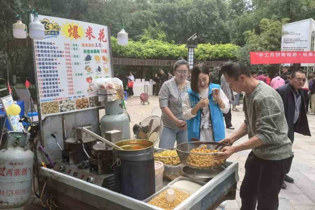 下午3点活动开场,文化广场一片热闹景象。手工月饼区里,志愿者们手把手带着大家揉面、包馅、压花,模具上“中秋快乐”“欢度国庆”的字样交替出现,老人捏着熟悉的面团,回忆起小时候的中秋节;孩子踮着脚把馅料塞进面皮,鼻尖沾了粉也笑得开心。党员们会在一旁搭把手,帮不方便的居民递工具,时不时分享自家的“月饼小秘方”。猜灯谜区的灯笼下,退役军人李女士正拿着写满谜题的彩纸,既有“举头望明月”的中秋题,也有“祖国腾飞”的国庆题;旁边的爆米花机“砰砰”响着,甜香飘得老远,免费的羊奶粉品尝,志愿者会把刚出锅的爆米花装进纸筒和热乎乎的羊奶递到老人和孩子手里,暖手又暖心。