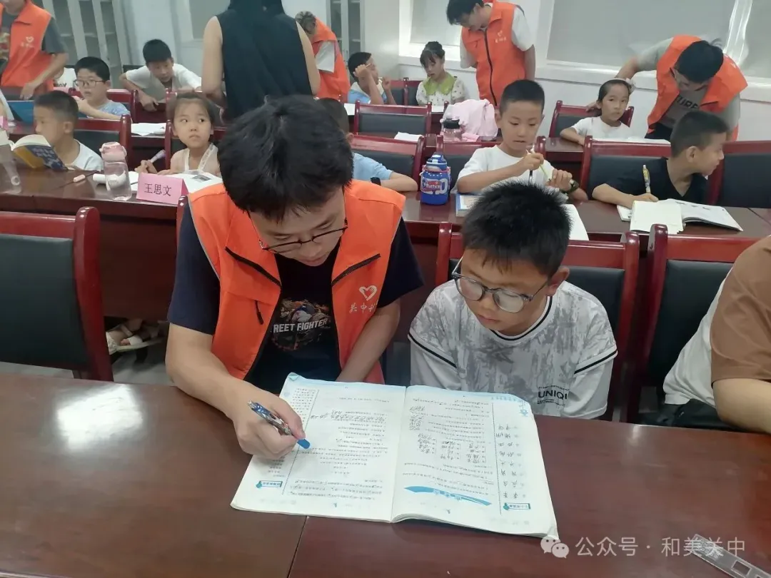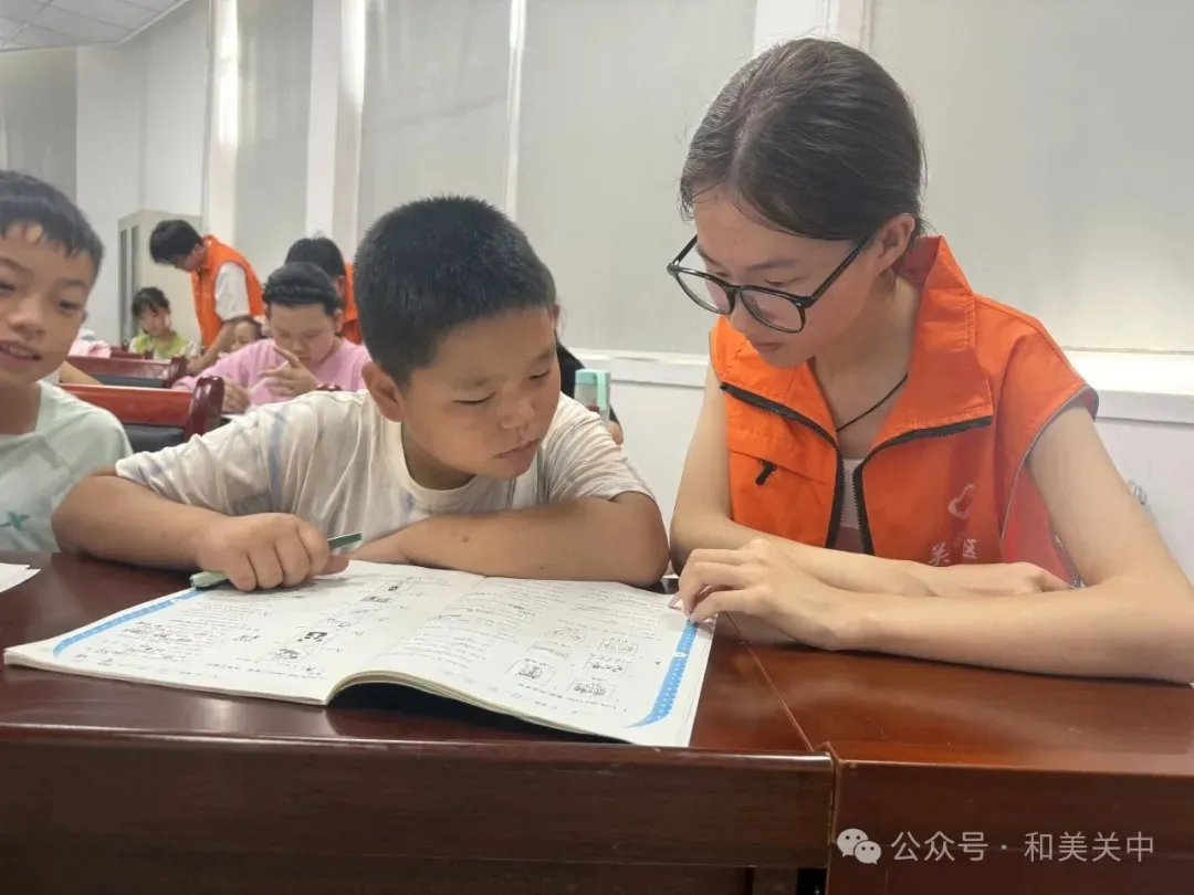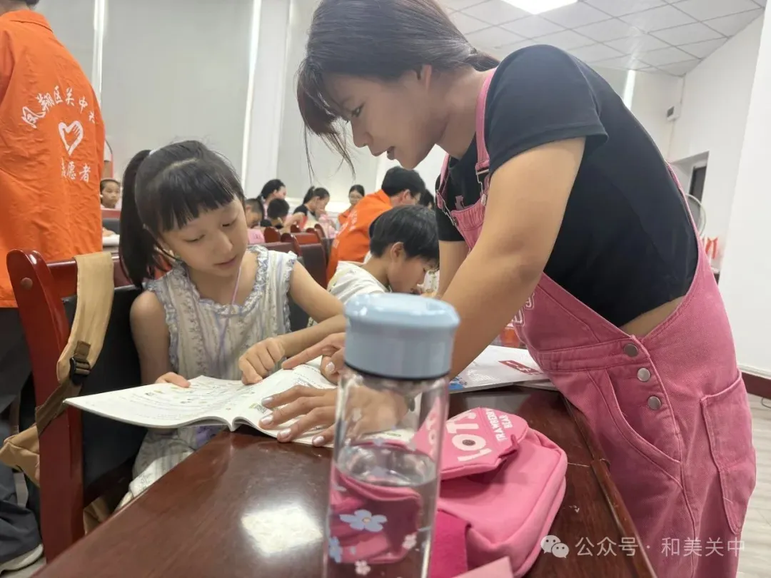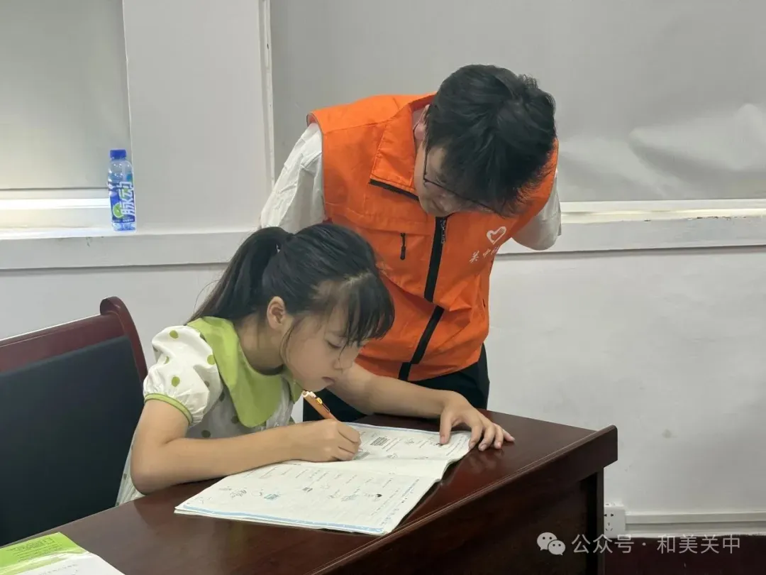 课业辅导环节,志愿者们针对孩子们前两日暴露的学习难点开展专项指导:为拼音薄弱的低年级学生设计“拼音儿歌”认读游戏,给数学应用题困惑的高年级学生总结“关键词提取法”。志愿者还特别关注暑期作业的进度,帮助孩子们制定“每日学习清单”。一对二的耐心陪伴,让知识掌握更扎实,自主学习的信心也愈发坚定。