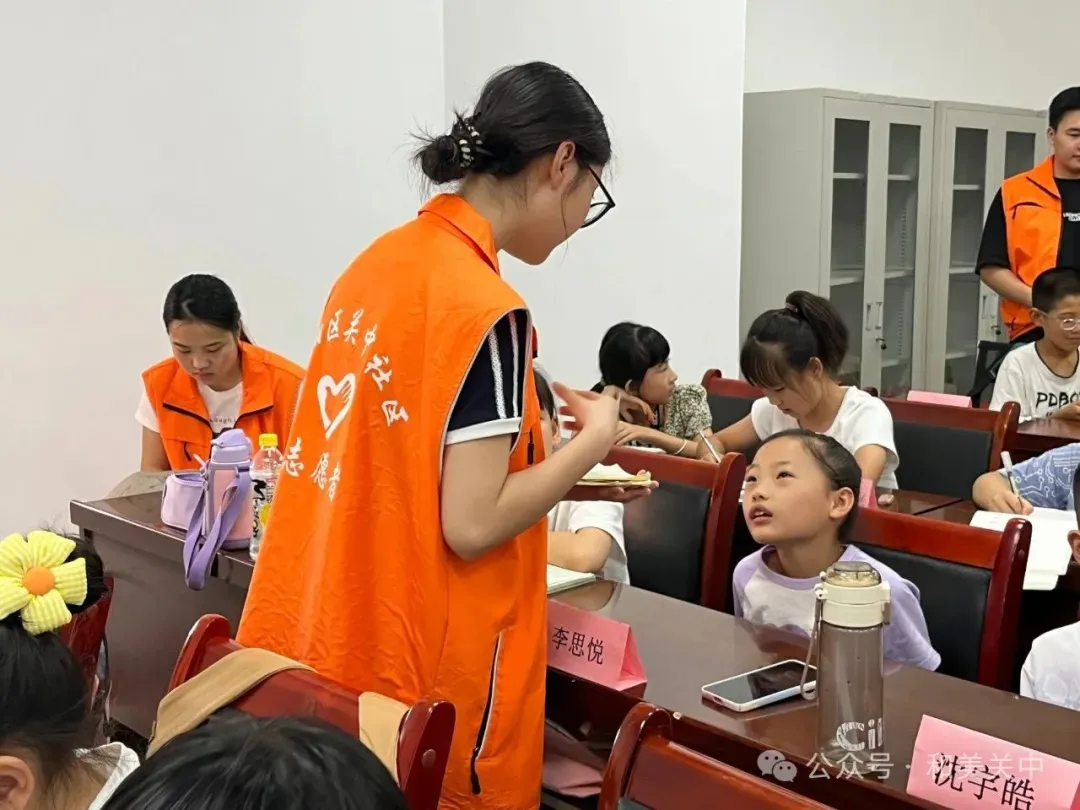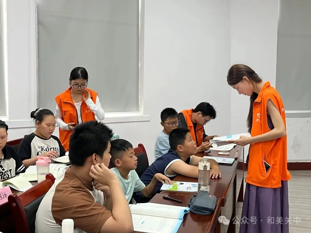 课堂转入作业辅导时间。社区志愿者和工作人员采用“一对二”模式,针对孩子们的数学计算、生字默写等难题耐心讲解。“这道应用题要先算总人数,再平均分……”志愿者赵紫衣耐心地帮孩子理清思路。