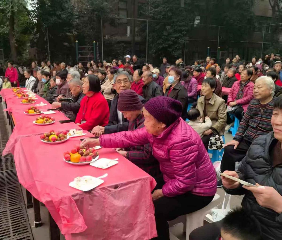 金秋送爽,丹桂飘香,又是一年重阳至。为大力弘扬中华民族尊老、敬老、爱老、助老的传统美德,营造和谐温馨的社区氛围,高山流水社区联合市直机关党工委、谭家街道办事处、愿景物业和日新社工于2025年10月29日上午10时,在西区篮球场举办了情意融融的“九九重阳情,面香暖人心”主题敬老活动,谭家街道安全生产办公室也来到了活动现场。