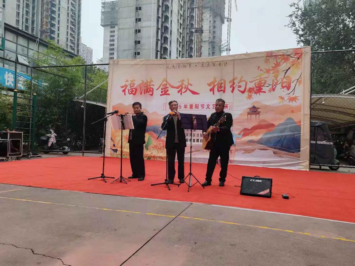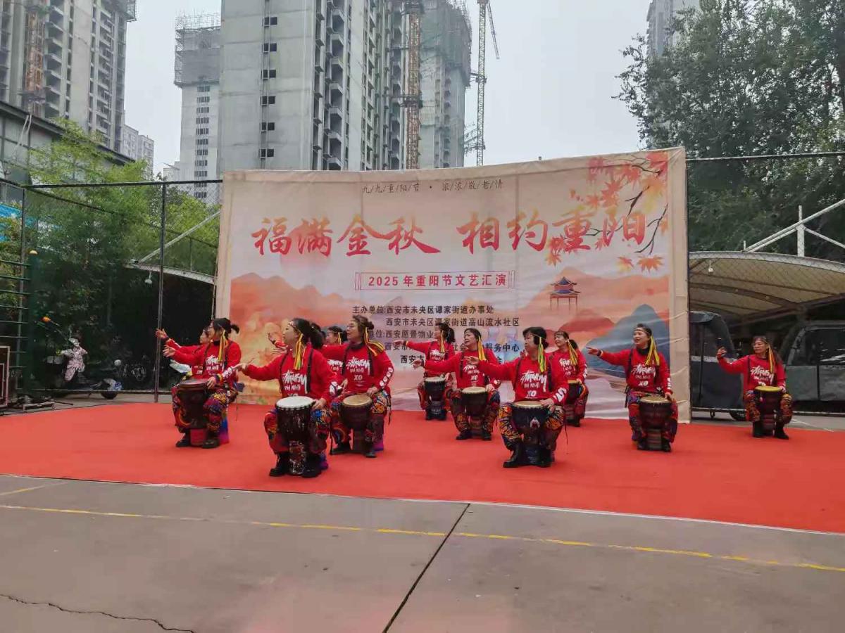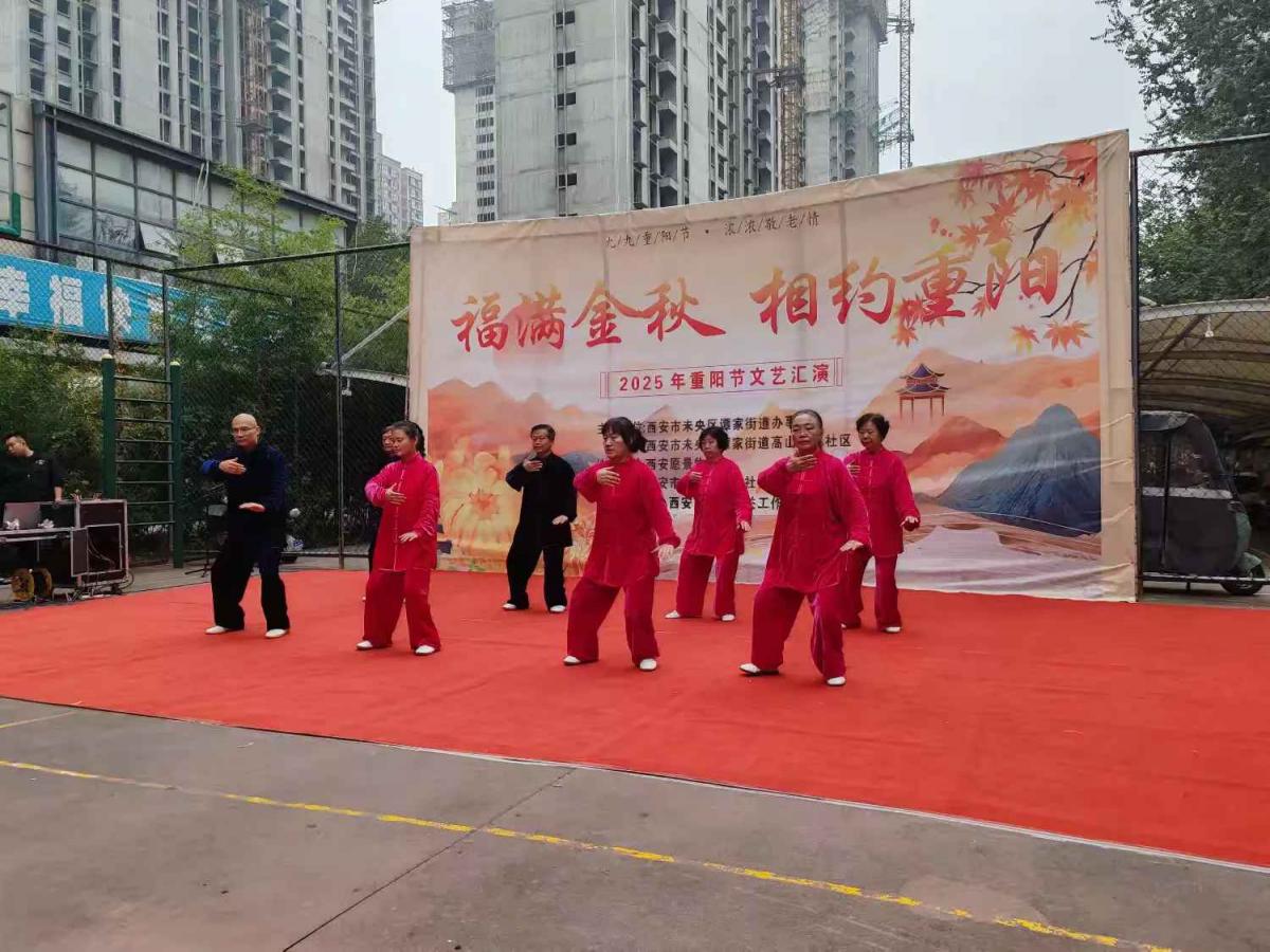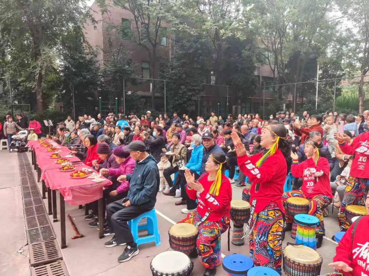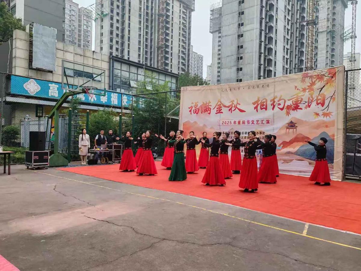 集体生日环节过后,活动在热烈祥和的气氛中正式拉开文艺汇演的帷幕。首先登场的是开场舞蹈《爱人在等我》,优美的舞姿瞬间点燃了全场热情。随后,一系列精彩纷呈的文艺节目轮番上演:深情款款的独唱《卓玛》,唱出了对美好生活的向往;激昂振奋的手鼓表演《九九艳阳天》《精忠报国》,节奏铿锵,令人精神抖擞;乐器小合奏《最美不过夕阳红》旋律悠扬,道尽了老年生活的从容与美好;演绎中,机关党工委领导给现场过生日的老人送生日礼物,和现场居民互动送上小礼品。随后,葫芦丝吹奏的《九月九的酒》,勾起了大家对传统节日的温馨记忆;刚柔并济的传统杨式太极拳《我爱你中国》,展现了中华文化的博大精深与老当益壮的精神风貌;陶笛独奏《十送红军》深情婉转,唤起了对峥嵘岁月的追忆;最后,热情奔放的新疆舞《留在我身边》将演出推向高潮,赢得了阵阵掌声。这些节目不仅丰富了老人们的精神文化生活,更表达了社区对长者们的崇高敬意和美好祝福。