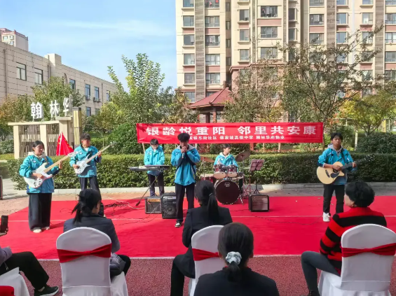精彩的文艺表演在社区夕阳红舞蹈队的腰鼓节目《绿旋风》中拉开序幕,演员们用灵动的舞姿展现了老年人积极乐观、健康向上的精神风貌,打破了年龄的界限,绽放出不输年少的活力。扇子舞《九月九的酒》,舞姿柔美婉转,扇影翻飞间漾开重阳的传统韵味;蔡家坡高级中学同学们带来诗朗诵《盛世中国》、乐器合奏、古筝独奏及舞蹈等独具特色的节目,以多样形式表达对祖国的热爱与青春风采。随后,学生代表将满含心意的花束送到老人手中,一位老人眼眶微红,笑着说:“谢谢孩子们,有这么好看的节目,还有你们送的花,这重阳节过得比过年还热闹、还舒心!”简单话语里满是真切感动,也为这个重阳添了份沉甸甸的暖意。