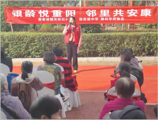 又逢重阳好时节,尊老敬老正当时。为传承和弘扬中华民族尊老、敬老、爱老的传统美德,蔡家坡镇东街社区以“银龄悦重阳 邻里共安康”为主题,精心组织开展重阳节活动,让老年群体在温馨氛围中感受节日关怀与邻里温情。