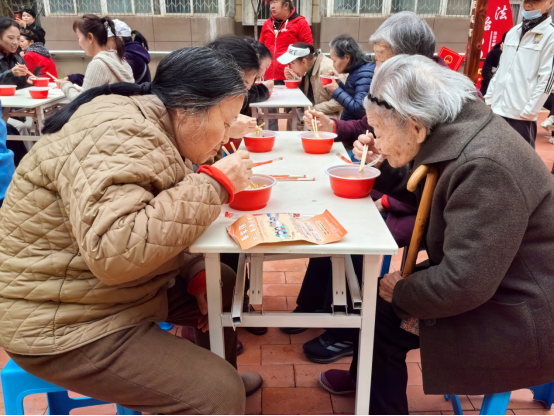 最暖心的当属长寿面宴,学东金管家工作人员早早忙碌起来,精心熬制的臊子汤里食材丰富,搭配筋道的面条,香气四溢。志愿者们将一碗碗热气腾腾的长寿面端到老人手中,一句“祝您健康长寿”的祝福,让老人们吃出了温暖与幸福感。老人们围坐一起,一边拉家常一边品尝,“这臊子面味道真地道”今年90岁王阿姨端着面条,脸上满是笑容。