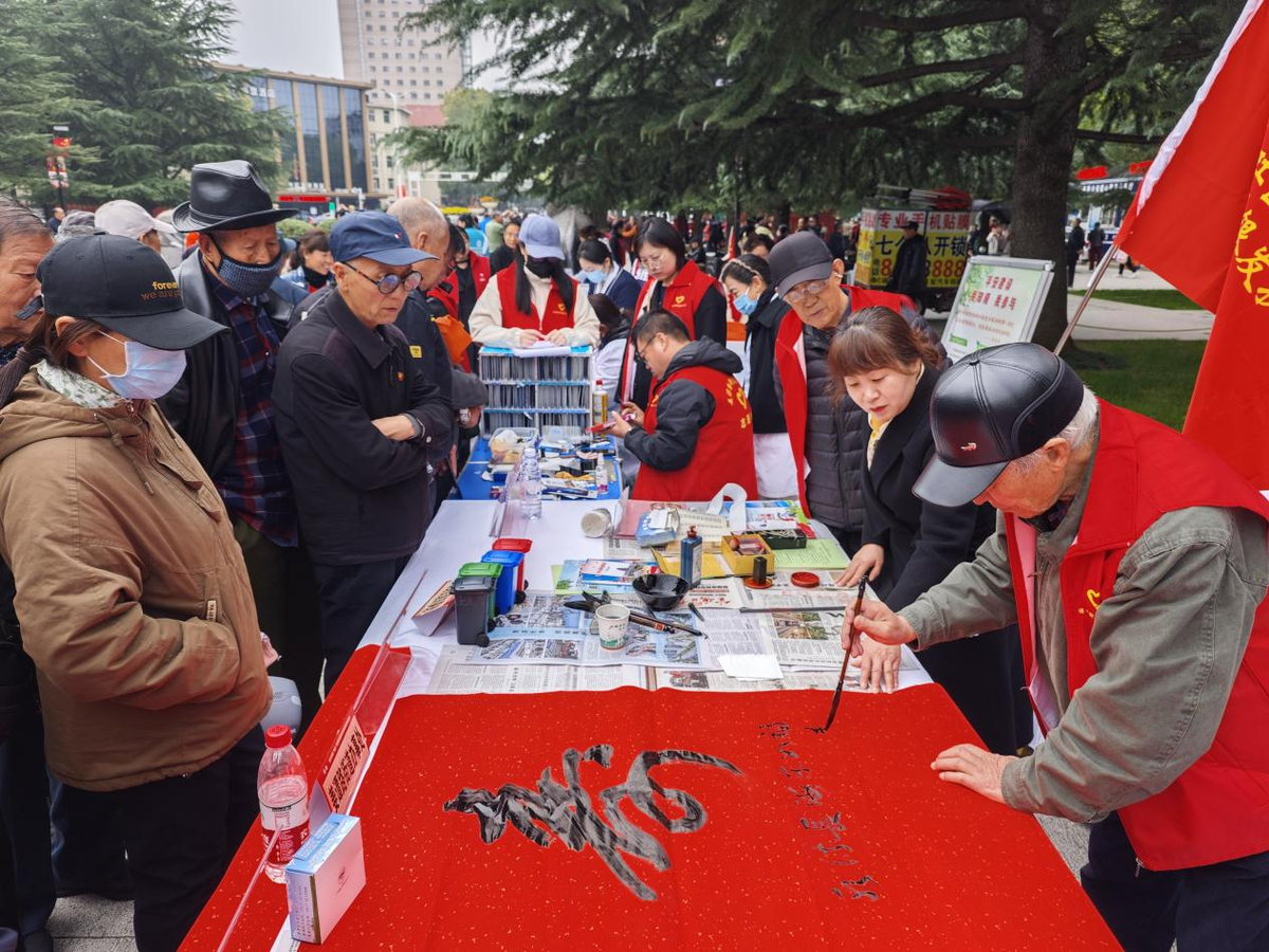 墨香四溢的“翰墨丹青书法互动”区域人头攒动,热情洋溢的银龄志愿者处处彰显银龄志愿者服务风采,几位颇有造诣的老年书法爱好者挥毫泼墨,免费为群众创作并赠送书法作品,一幅幅苍劲有力的书法字画,或寓意吉祥,或励志向上,承载着老年人们对美好生活的热爱与祝福,传递了积极向上的文化正能量,吸引了周围群众纷纷围观,成为现场一道亮丽的风景线!