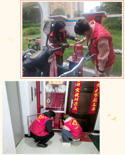 志愿者对小区消防栓、灭火器、应急照明灯及紧急疏散指示标志开展全面排查,重点核查设备完好性、使用性,是否存在遮挡问题。对排查发现的隐患,第一时间建立整改台账、并督促物业及时整改,确保每一件消防设施在紧急时刻“拿得出、用得上”。
