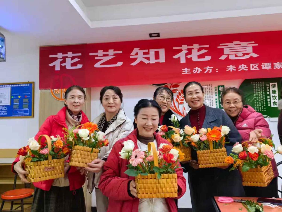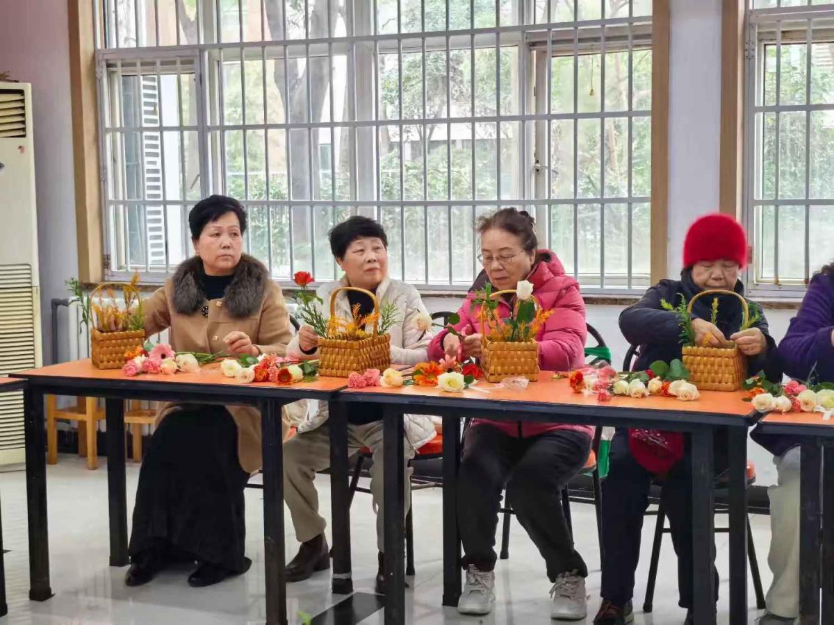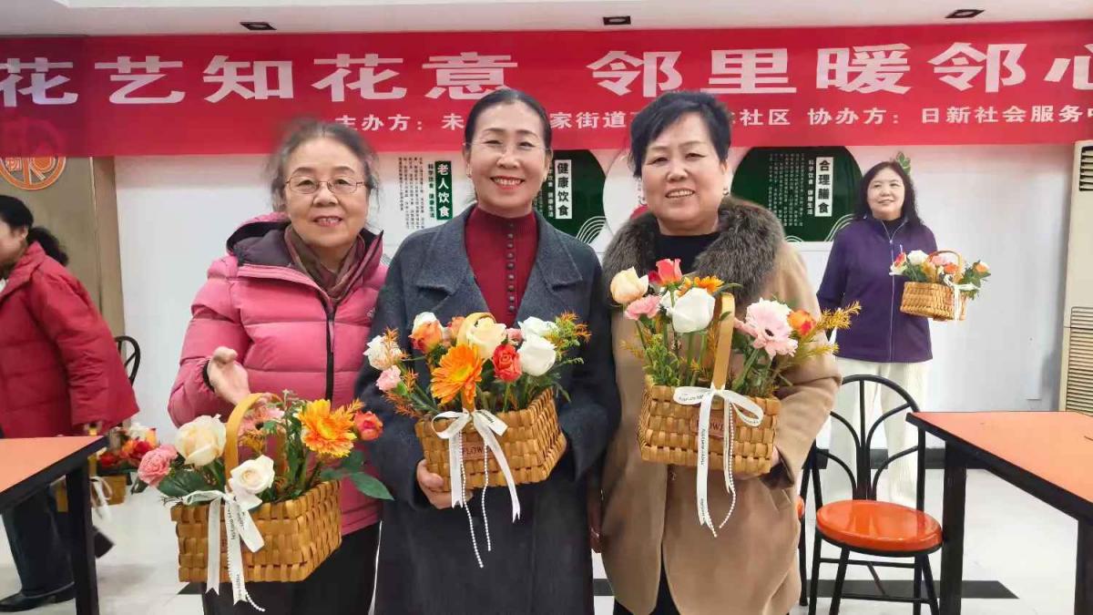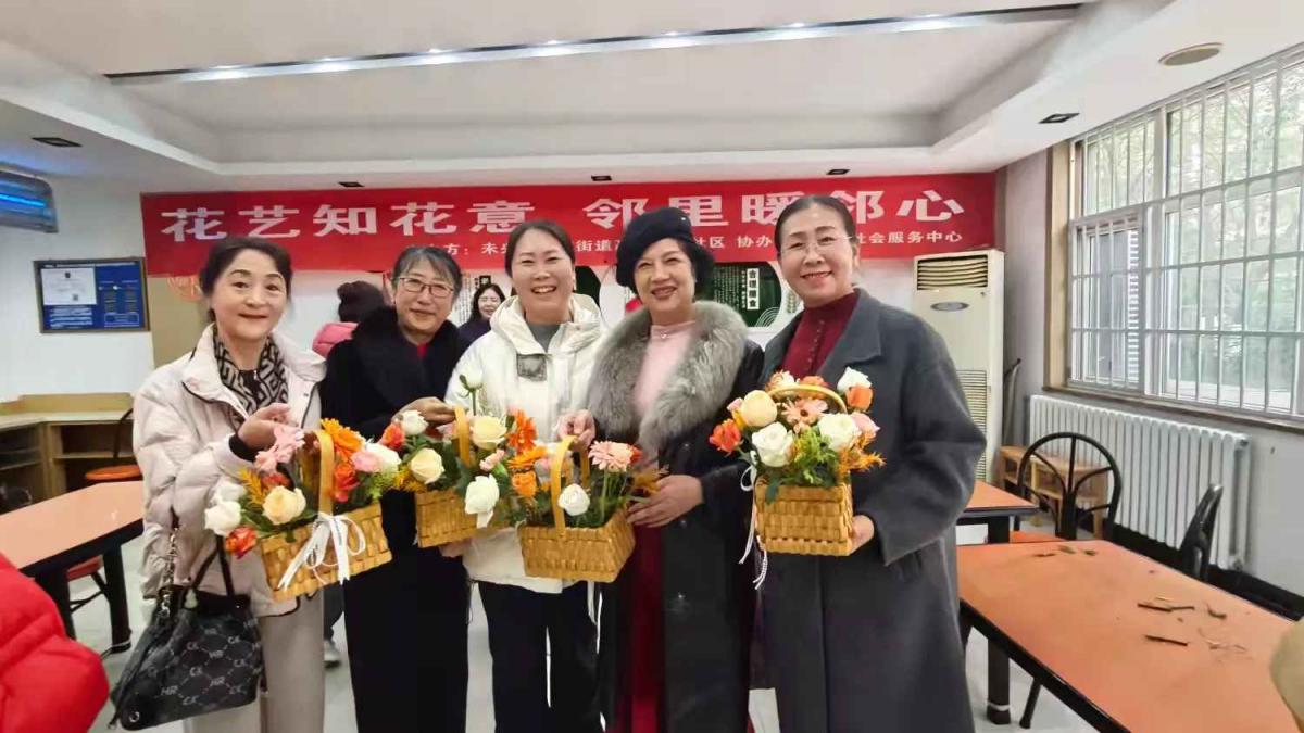 活动尾声,大家手捧自己的作品合影留念,脸上洋溢着满足与自豪。一篮篮鲜花不仅装点了生活,更联结了邻里情感。此次活动为居民们提供了放松身心的机会,也搭建了交流互动的平台,生动展现了高山流水社区和谐美好的生活氛围。