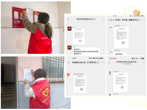 为确保整治行动取得实效,社区通过公众号推送、小区业主群通知、楼栋门口张贴公告等多种方式发布清理通知,全方位做好宣传动员工作。