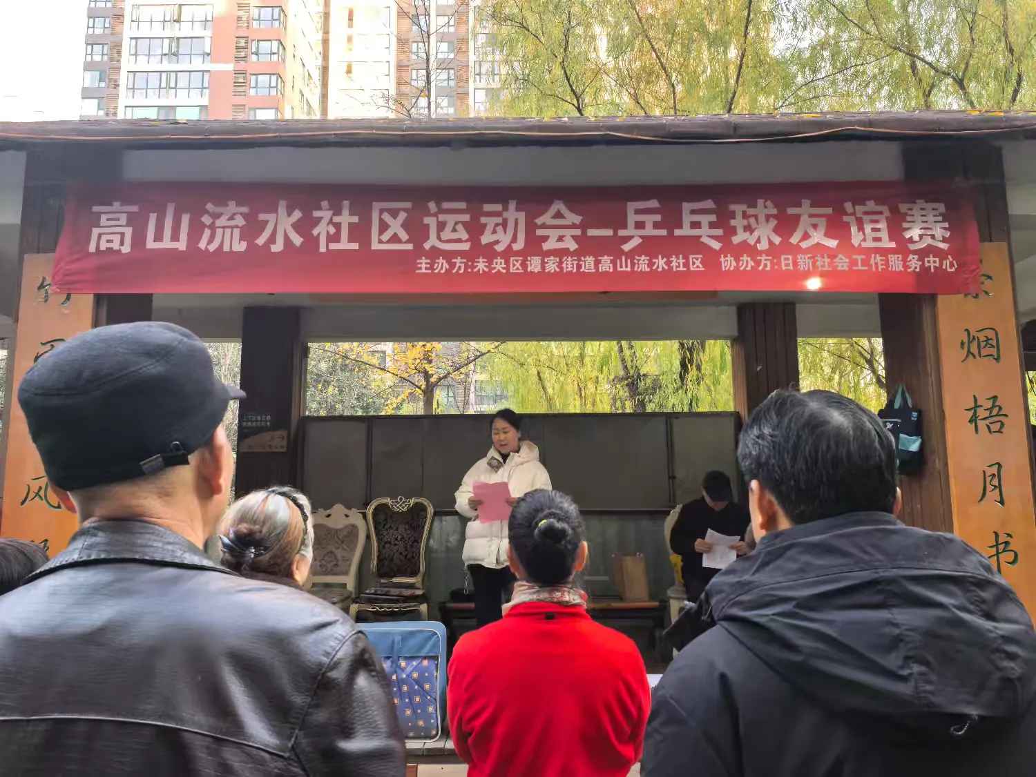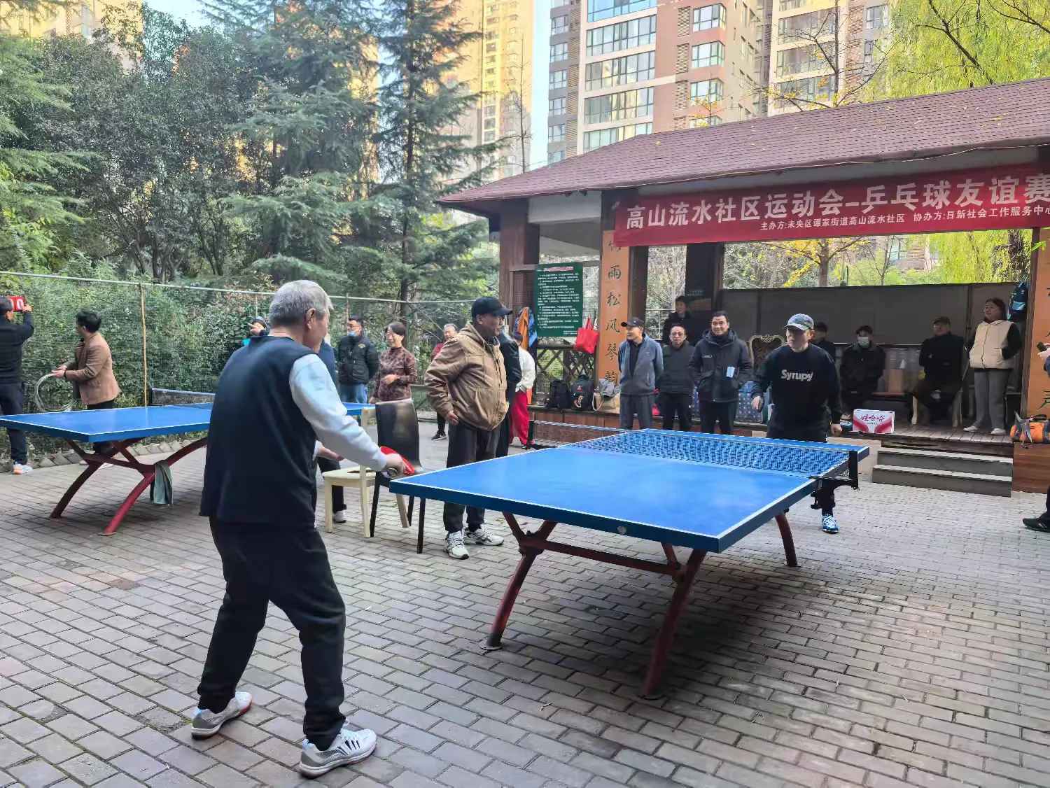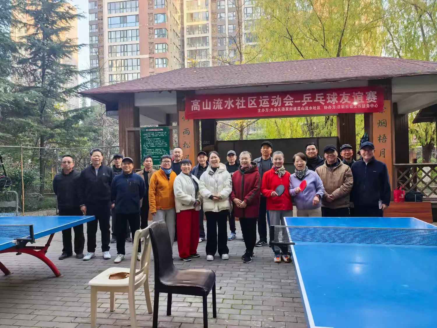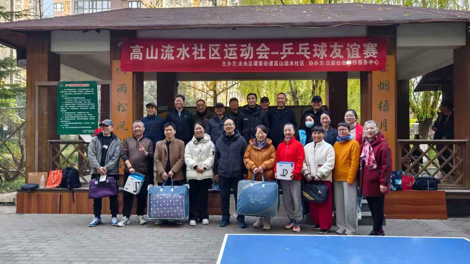 2025年11月28日上午,高山流水社区举办了第一届社区乒乓球友谊赛。此次活动在社区党员牵头、党支部与日新社工联合组织、社区党员、退役军人、蒲公英志愿者团队、社区网格员协同助力、街道安全生产和消防办公室的支持下顺利举行。党支部办友谊赛旨在通过体育交流搭建邻里互动平台,充分发挥党员先锋模范作用,切实增强社区凝聚力与向心力。