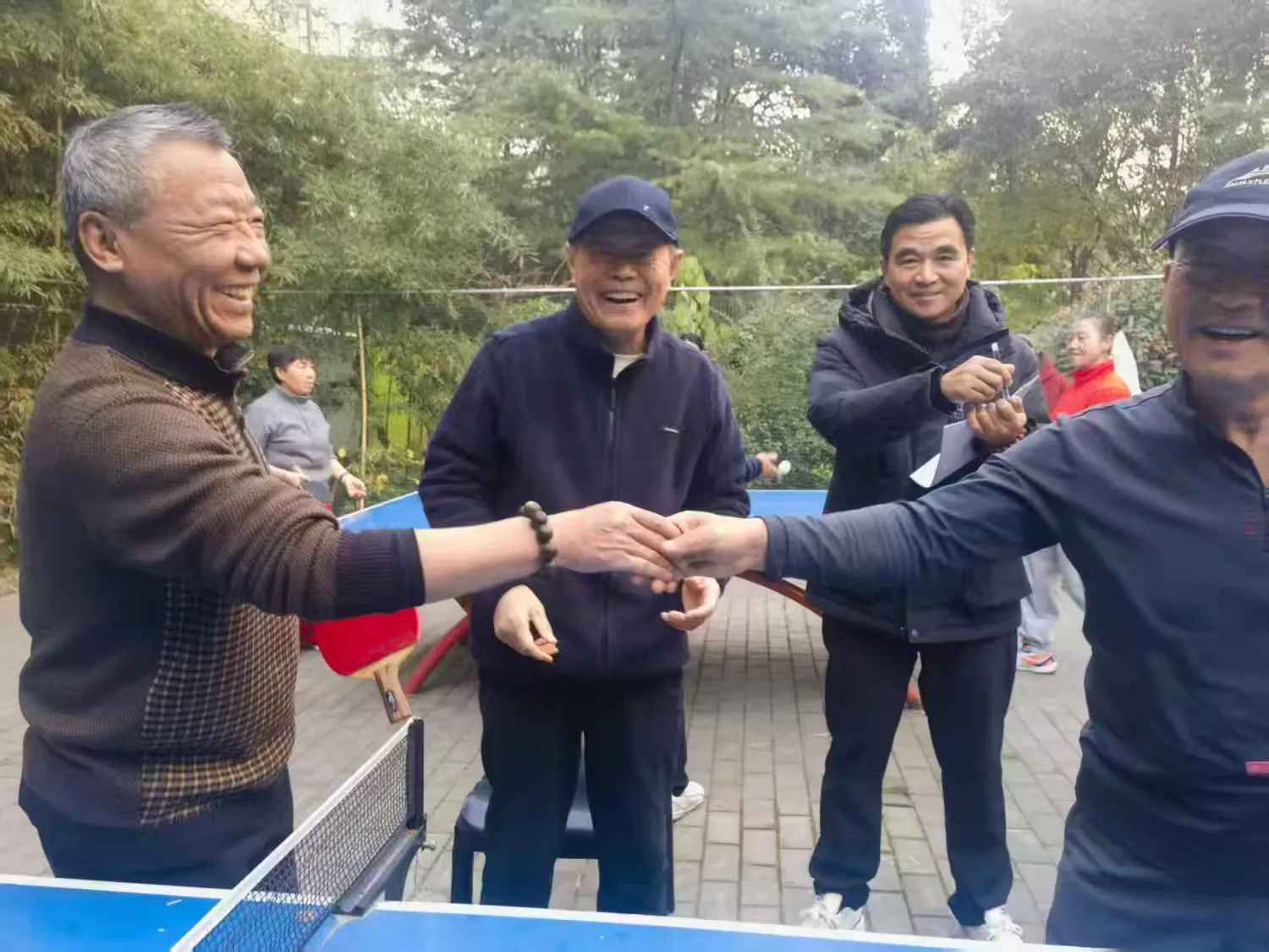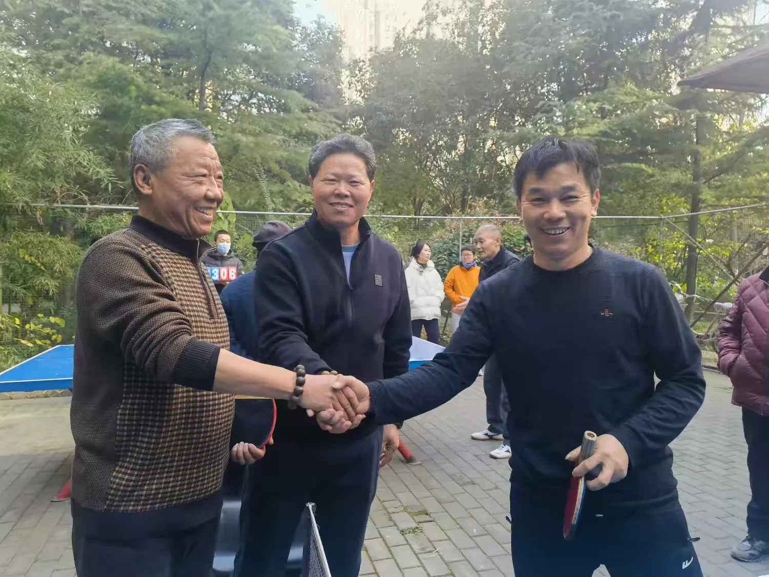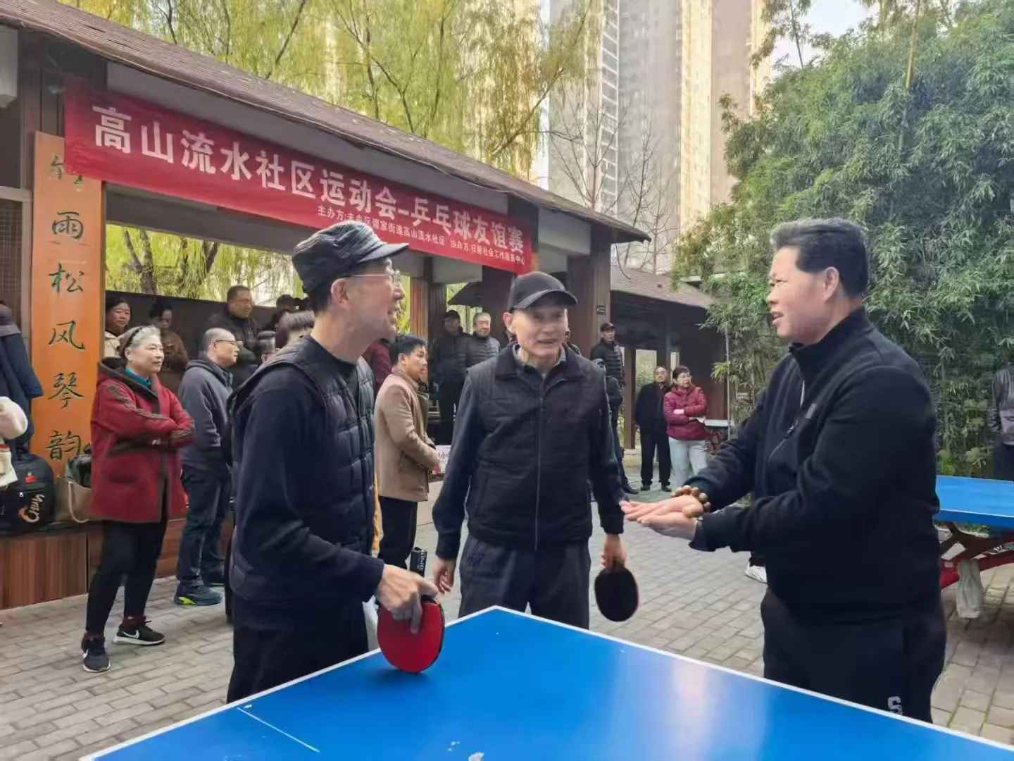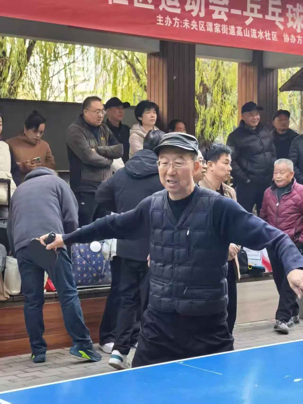 瞧瞧,今天社区乒乓球场比过年还热闹。高山流水社区毕新平做赛前动员,以接地气的口吻鼓励大家放开打、放开乐尽情挥洒汗水。退休老干部张平做主持人动员时,大家已经跃跃欲试,随着毕书记那一声嘹亮地:“比赛开始!”。现场气氛瞬间被点燃。两个赛场,两张球台同时开赛,银球飞舞,扣杀、削球、弧圈球等精彩场面层出不穷,博得了现场观众的阵阵掌声与喝彩。各位选手全神贯注,挥汗如雨,展现了不凡的球技和积极向上的精神风貌。裁判认真执裁,公平公正,确保了比赛的顺利进行。整个赛场既充满了竞技的紧张刺激,又洋溢着邻里间的融洽与和谐。