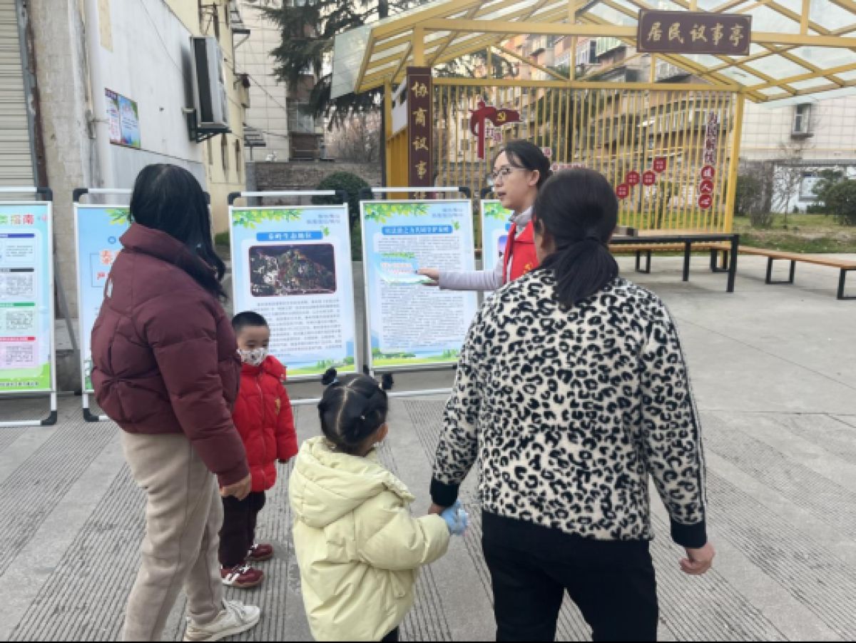 活动现场,社区工作人员在人流密集的广场设置宣传展板,以图文并茂的形式清晰标注秦岭核心保护区范围,重点呈现违规穿越可能面临的失温、迷路、坠崖等安全风险以及破坏生态环境的法律后果。真实的事故案例与《陕西省秦岭生态环境保护条例》核心条款解读,引发居民驻足关注与热议。同时,工作人员向过往居民发放宣传彩页,详细讲解违规穿越的处罚标准,针对老年居民与户外爱好者,工作人员强调秦岭地形复杂、气候多变,未开发区域无安全保障,呼吁大家选择正规景区登山,自觉抵制非法穿越。本次活动共发放宣传彩页150余份,覆盖居民200余人次。
