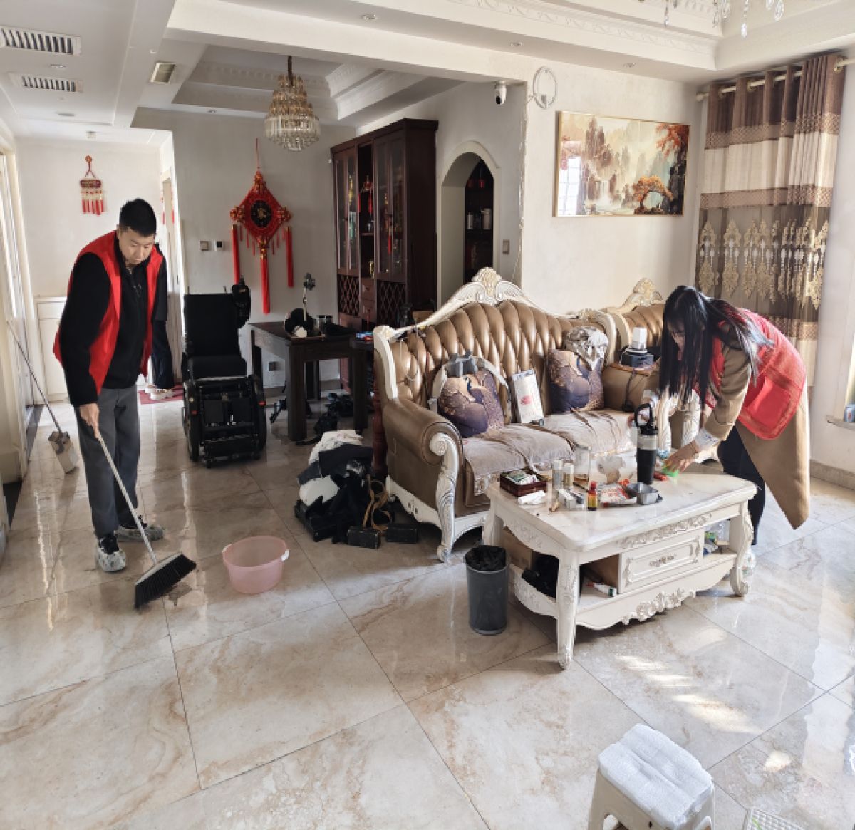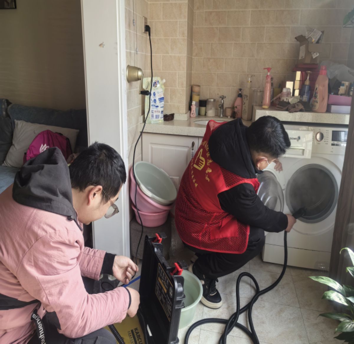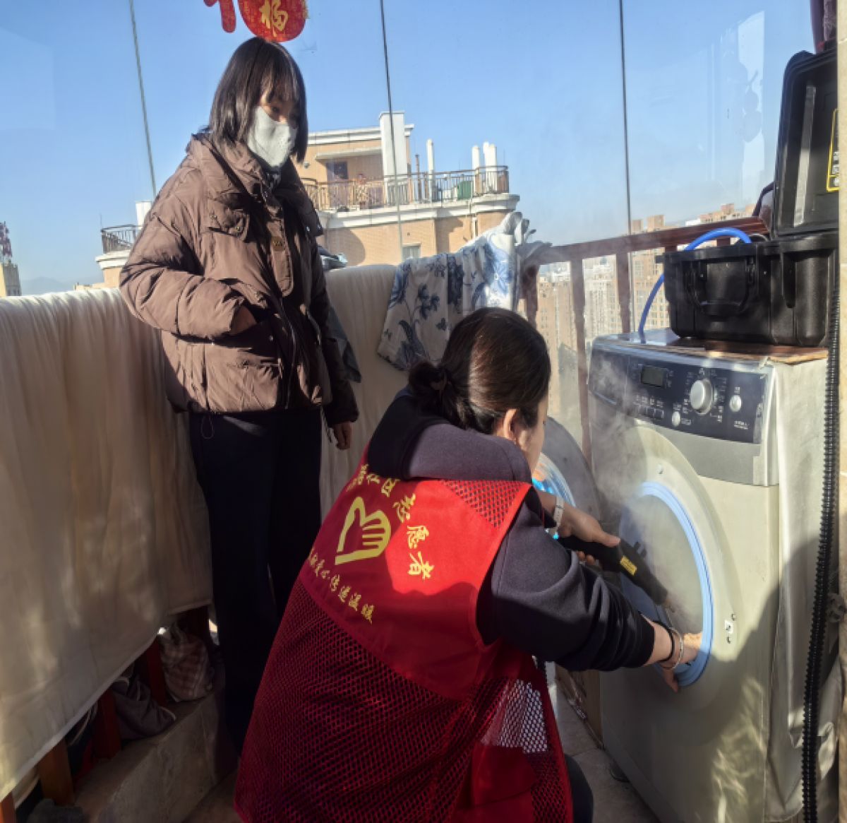 社区通过前期走访摸排,细致梳理出了服务名单。活动现场,身着红色志愿马甲的社区志愿者与苏宁易购专业服务人员组成暖心小队,携带专业蒸汽清洗设备走进居民家中。在困难残疾人家中,志愿者们仔细拆卸洗衣机部件,用高温蒸汽对滚筒、胶圈等死角进行深度清洁,将长期积累的污垢一一清除;同时,大家分工协作,擦桌子、扫地面、整理杂物,让老人的家在冬日里焕发出整洁温馨的模样。“这么冷的天,你们还惦记着我们,我这台洗衣机用了快12年了,还没有清洗过呢,自己也没有这个意识,这真是太感谢了!”独居老人何大爷握着志愿者的手,连连道谢。
