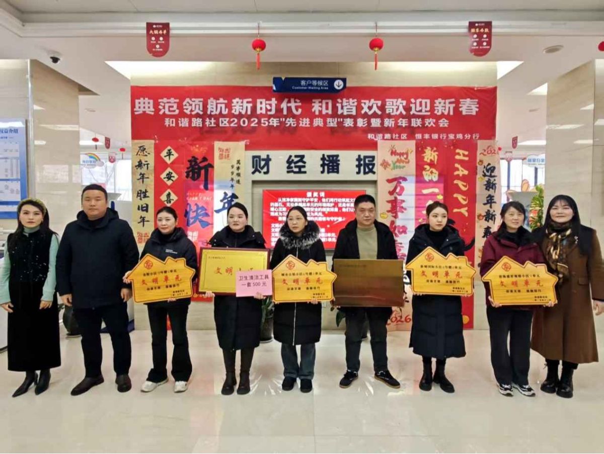 2.12月30日,和谐路社区携手恒丰银行宝鸡分行,以先进典型表彰与新年联欢共迎新春,尽显新时代社区风采。