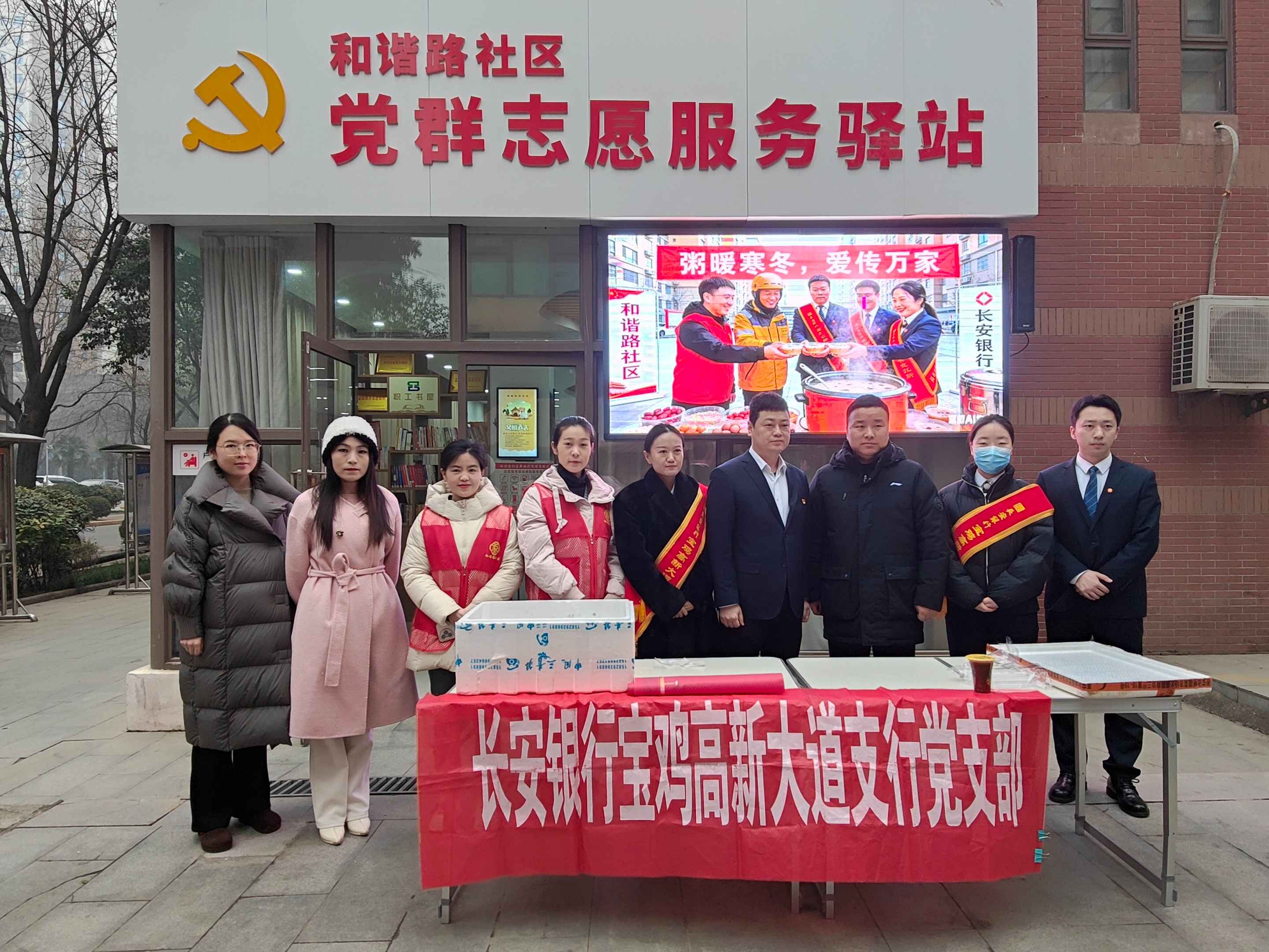 此次温暖送粥活动,离不开长安银行高新大道支行的大力支持。作为社区共驻共建单位,该行以实际行动赞助慰问礼品、组织志愿者参与,深度融入社区建设,切实履行社会责任,生动诠释了“和合党建”凝聚区域合力、“百合行动”联动社会资源的实践效能,为党建引领下的社企共建写下了温暖注脚。