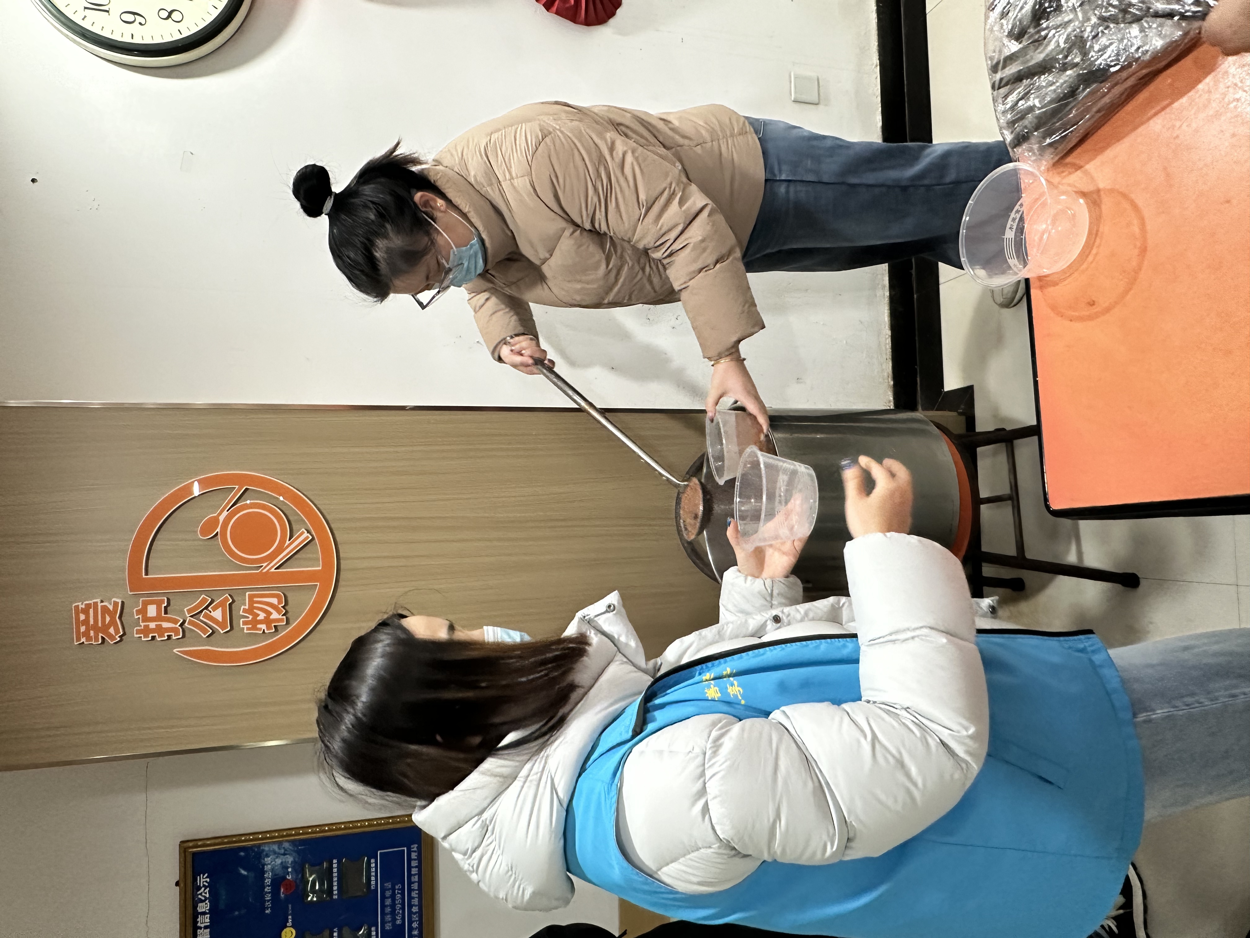 活动现场暖意融融、热闹有序,腊八粥的香甜气息萦绕四周。社区工作人员分工协作,热情地为居民盛粥递碗,动作娴熟、服务周到。辖区老党员、老年人、妇女儿童、青年居民等不同群体纷纷参与其中,大家手捧热粥,或围坐交流、或驻足畅谈,软糯香甜的腊八粥在舌尖化开,温暖直抵心间。