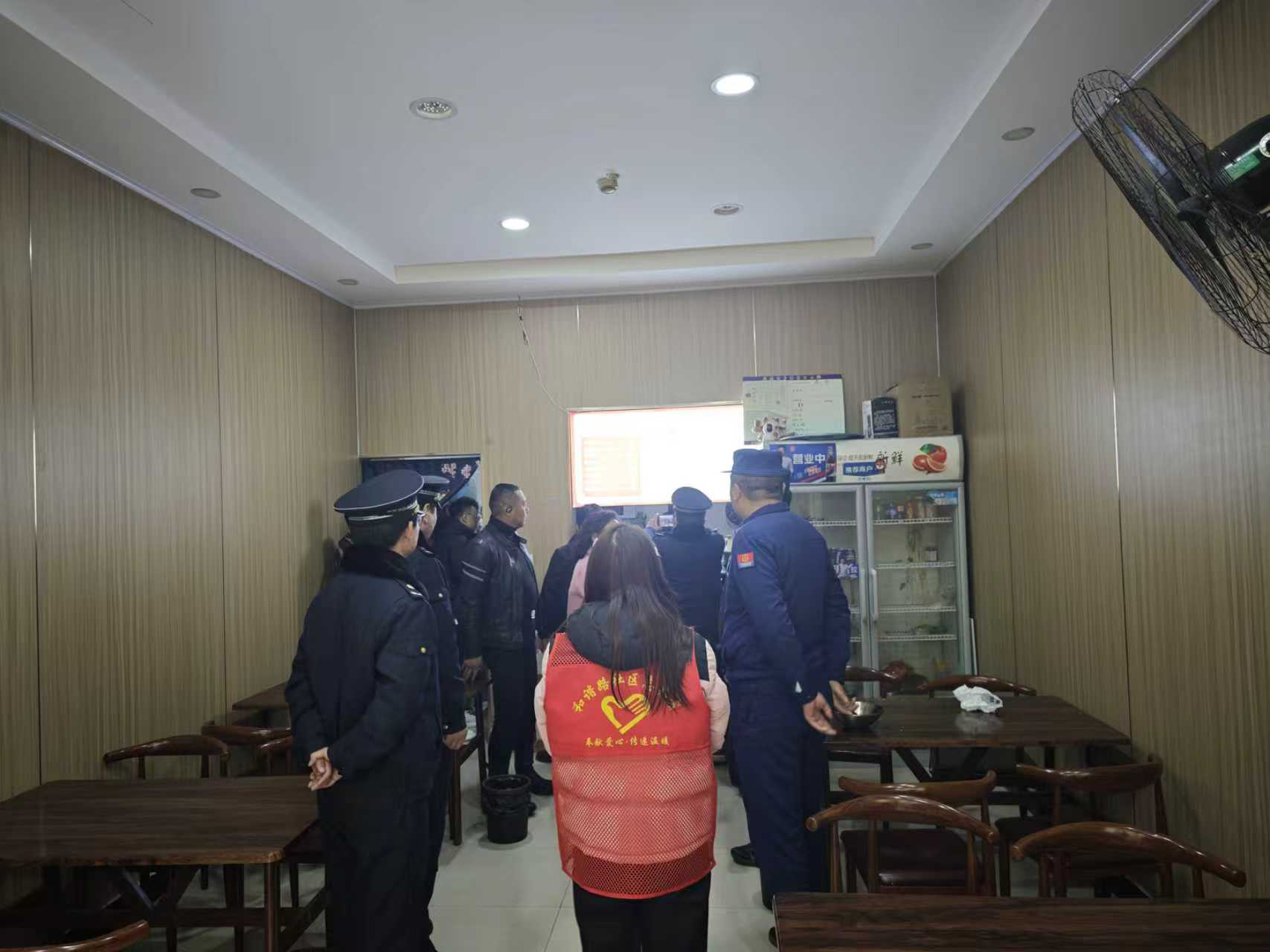 8、2月27日,和谐路社区联合消防部门,工信商务局、住建局、执法大队、辖区派出所、马营镇城管交通办、、中燃公司、小区物业对城市新天地商业街消防燃气安全后头看。