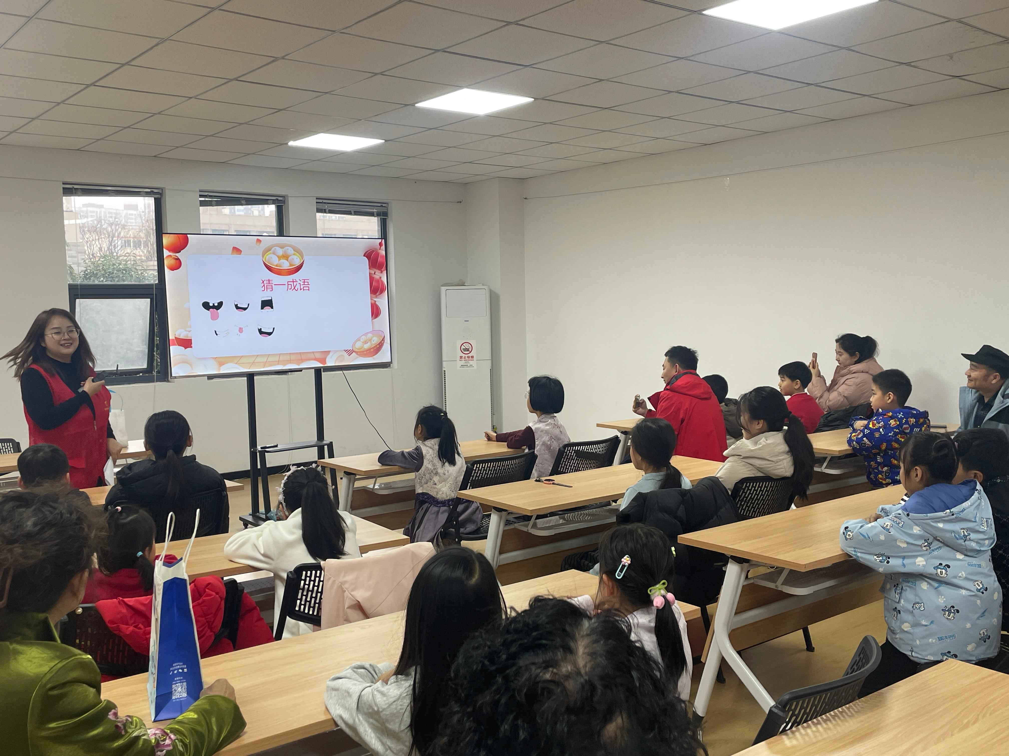 活动伊始,社区工作人员通过趣味视频,向居民讲述元宵节的起源传说、历史演变及猜灯谜、赏花灯等传统习俗,将文化底蕴融入通俗讲解,让大家在轻松氛围中加深对传统节日的理解,为活动奠定温馨喜庆的基调。随后的猜灯谜环节热闹非凡,PPT上的灯谜涵盖民俗、成语等类别,难易适中、趣味十足。大家或凝神思索、或轻声探讨、或踊跃抢答,现场欢声笑语不断,将节日欢乐氛围推向高潮。